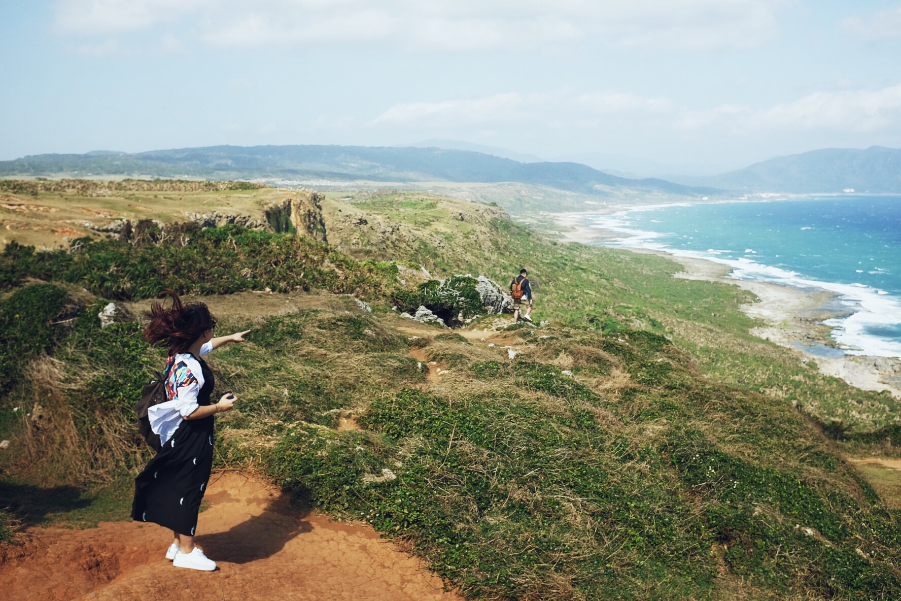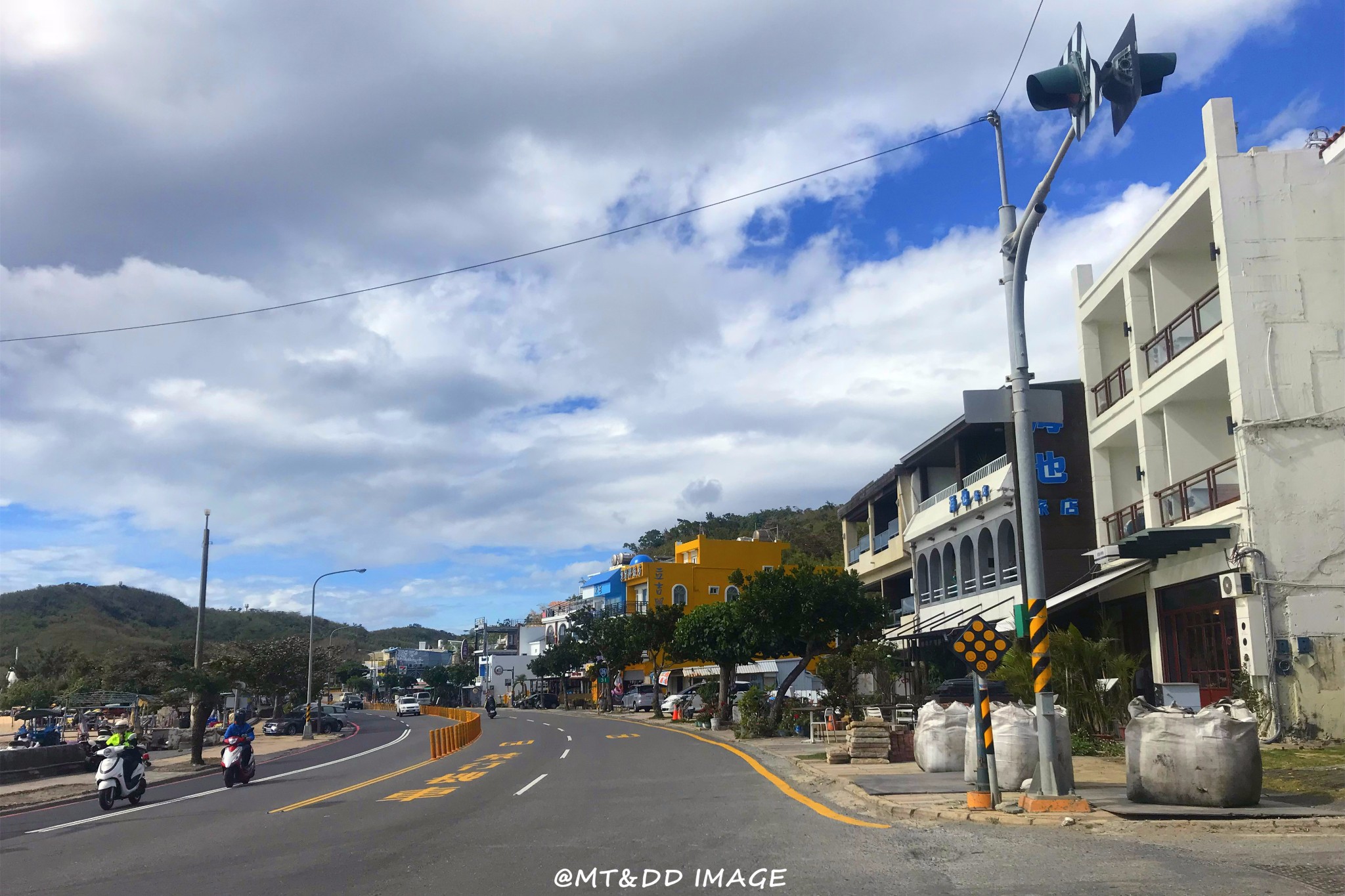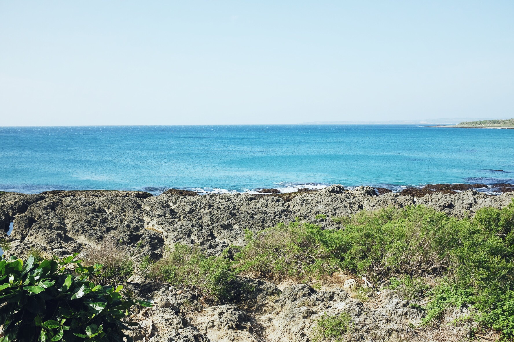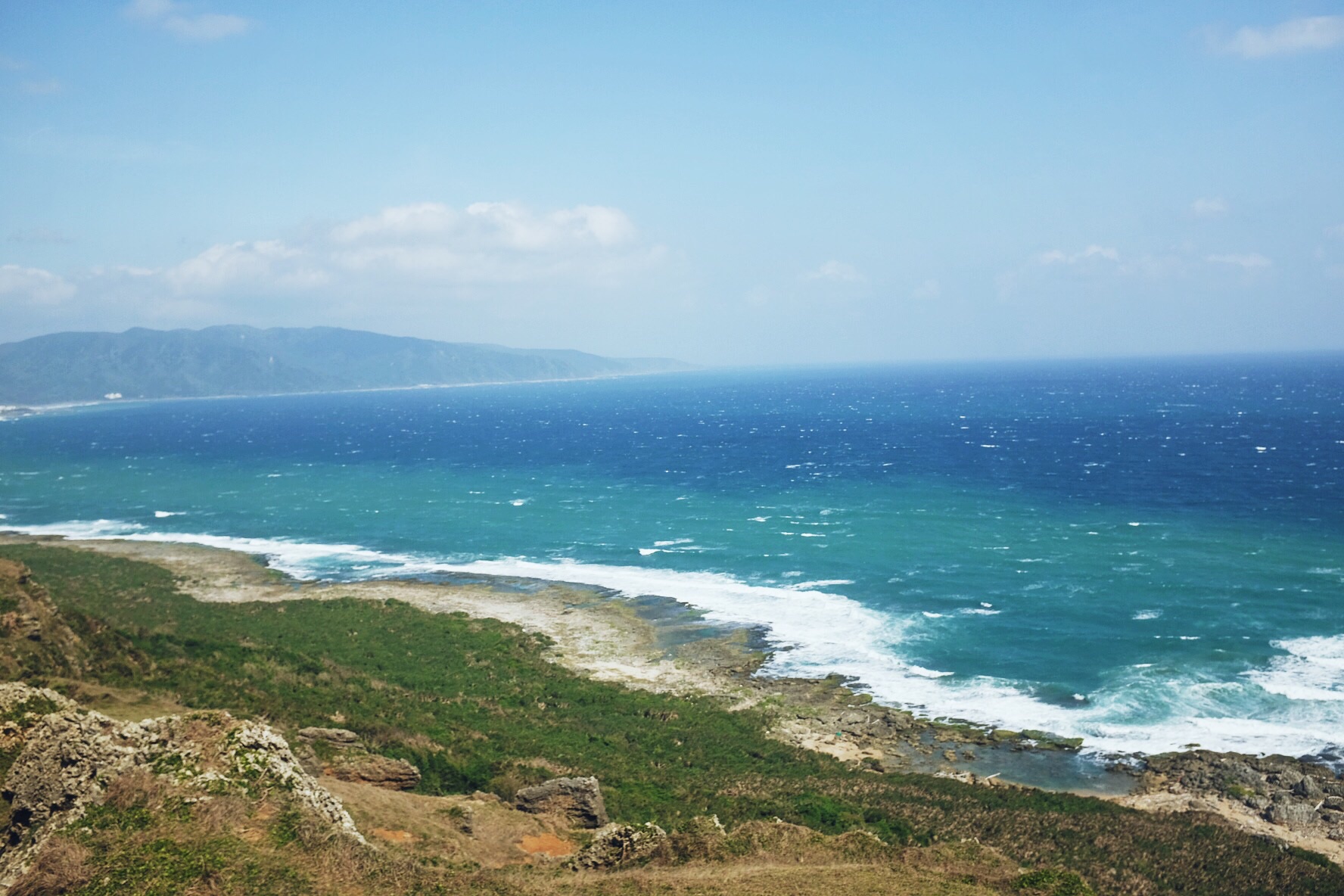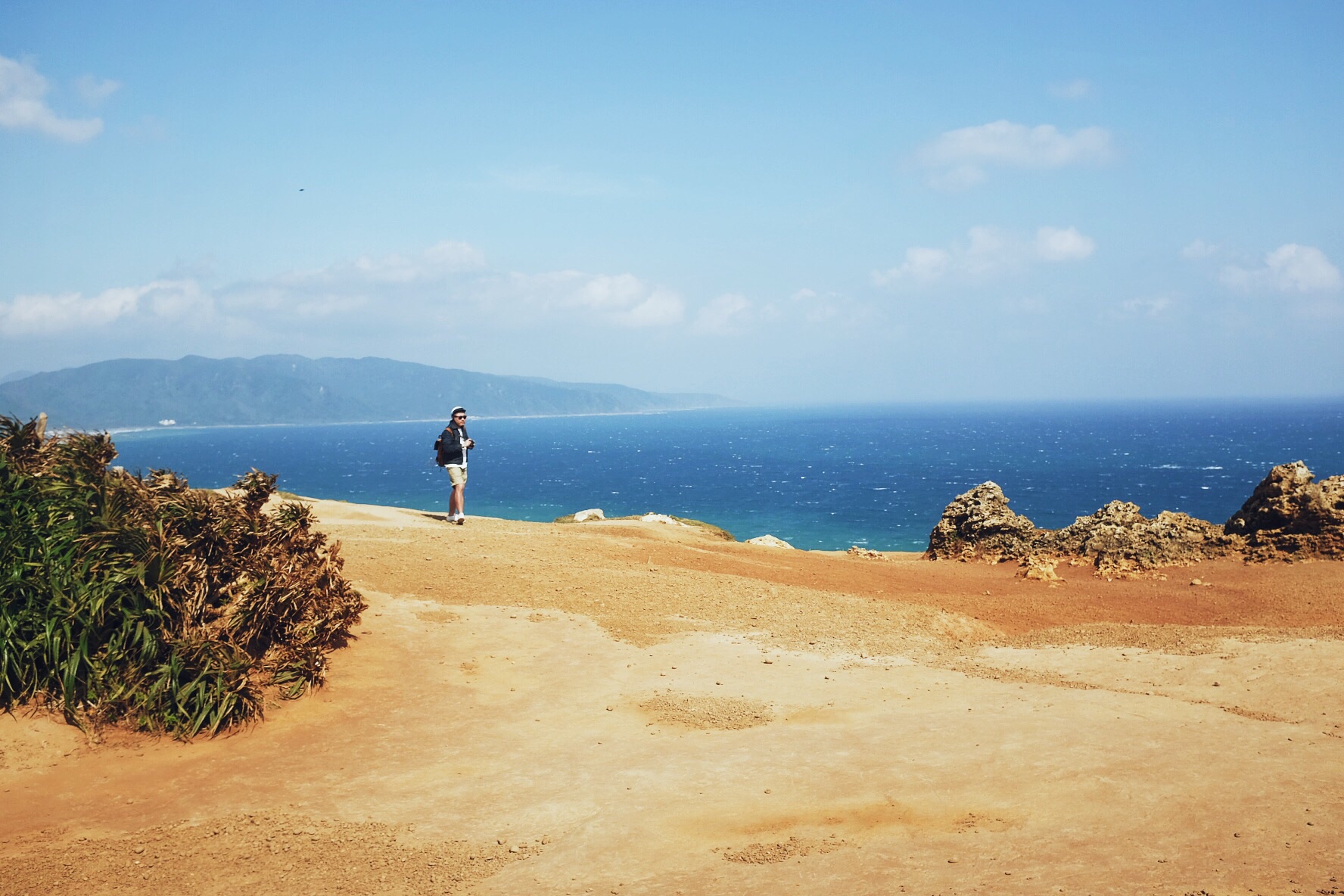 哇,终于开始像偶像剧般的,骑着机车乘着海风闻着海水的味道开始环岛!坐在后座有更多精力可以多看旁边的美景,比如海水的渐变和分层,还有越到中午越蓝(在