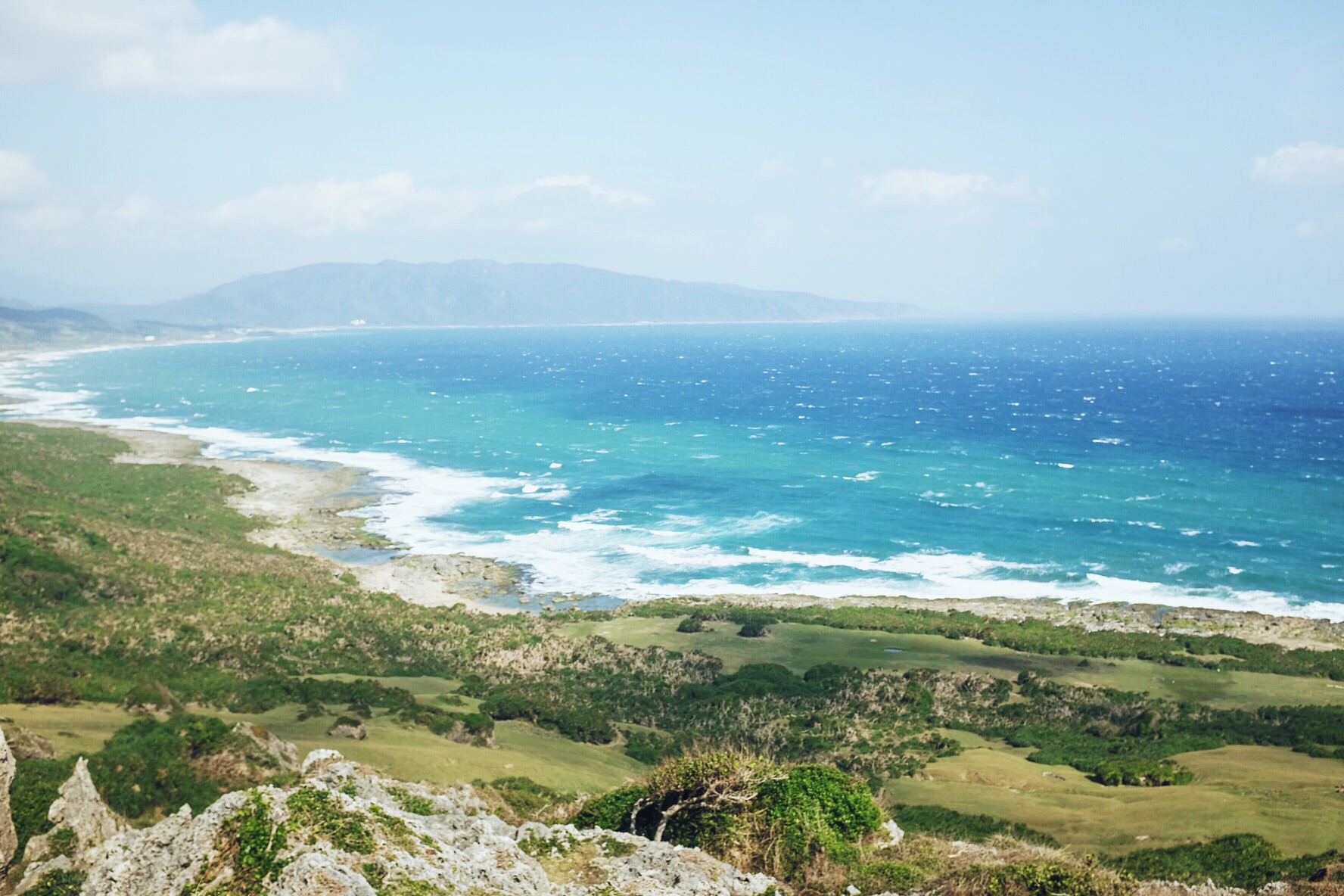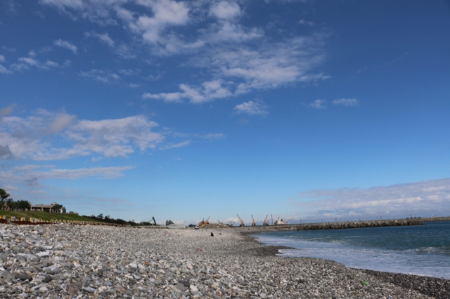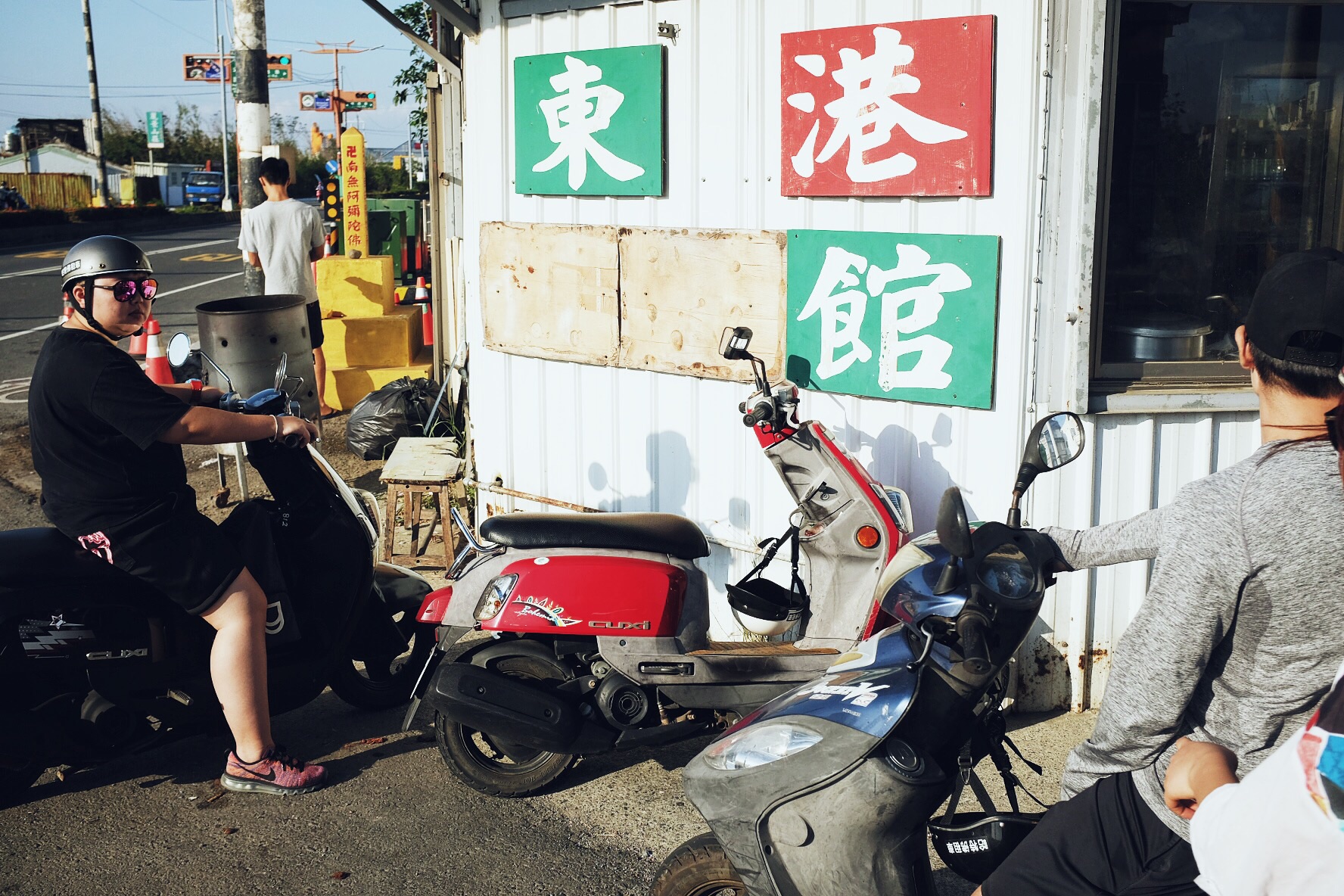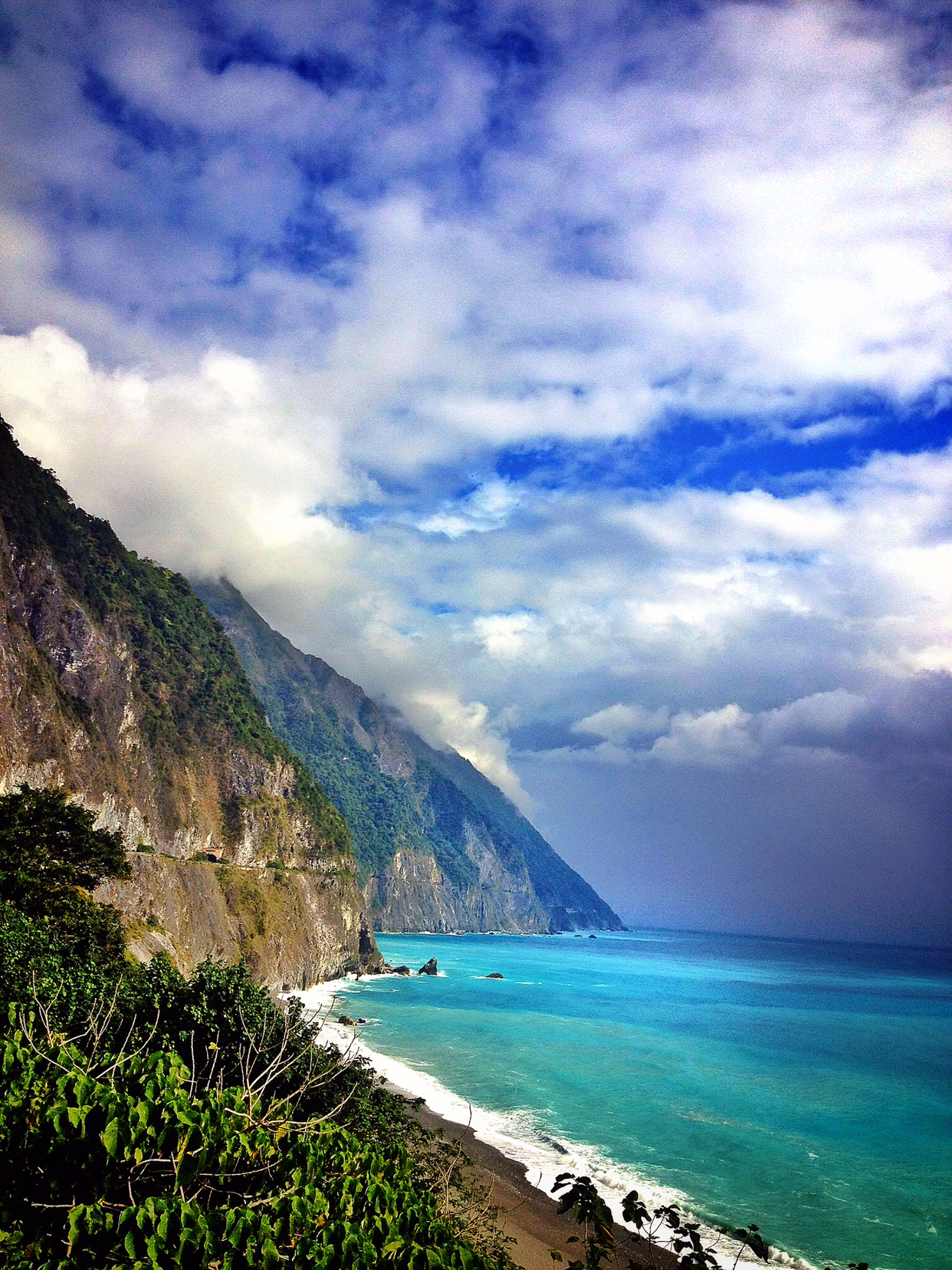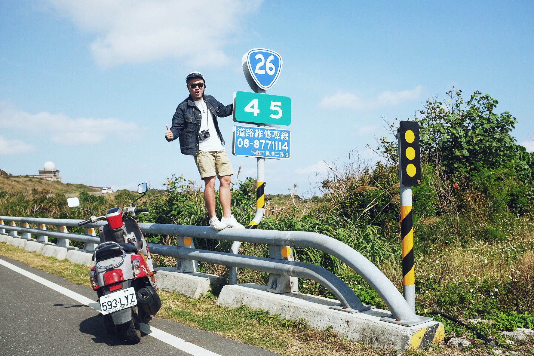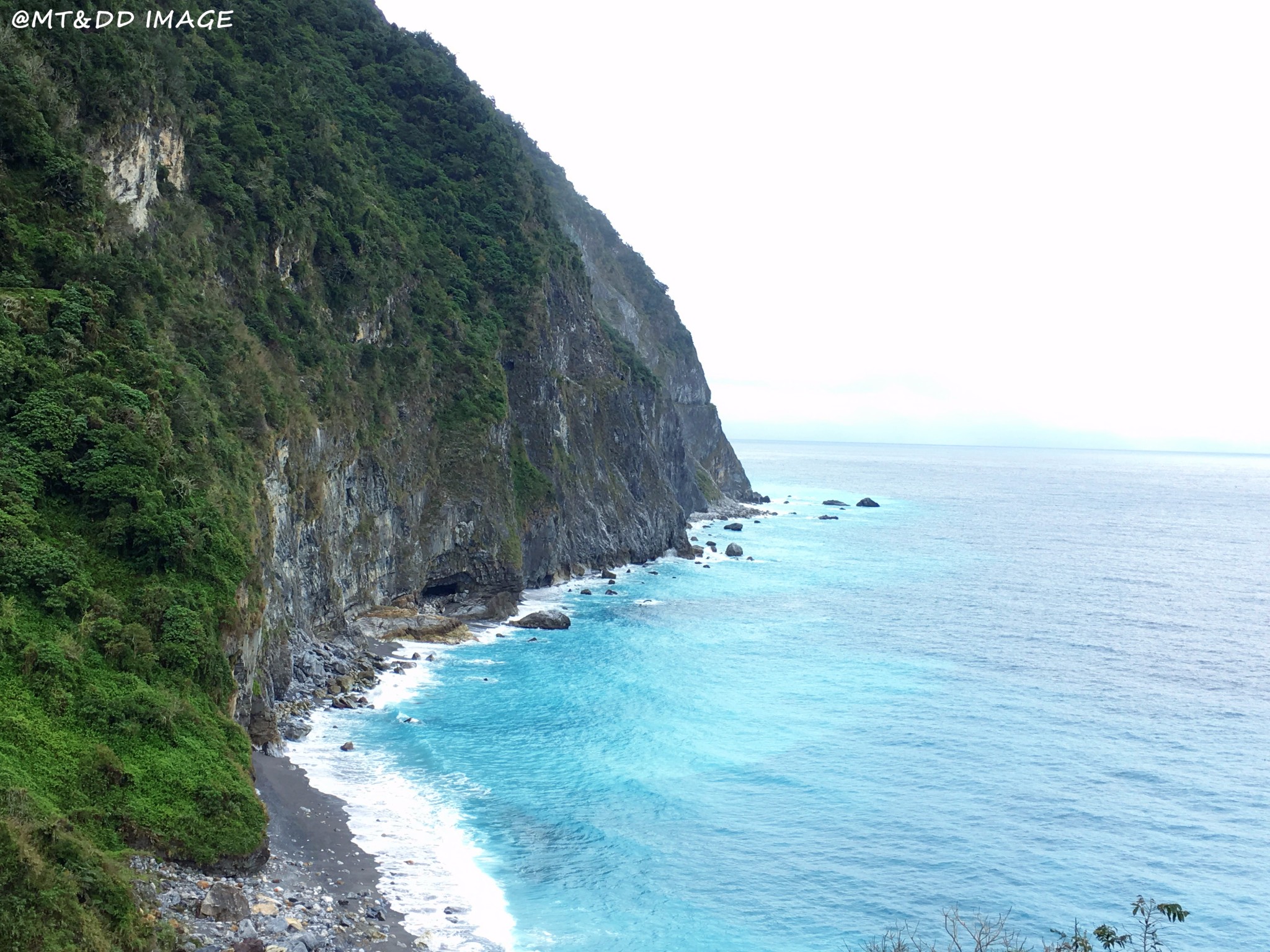 哇,终于开始像偶像剧般的,骑着机车乘着海风闻着海水的味道开始环岛!坐在后座有更多精力可以多看旁边的美景,比如海水的渐变和分层,还有越到中午越蓝(在