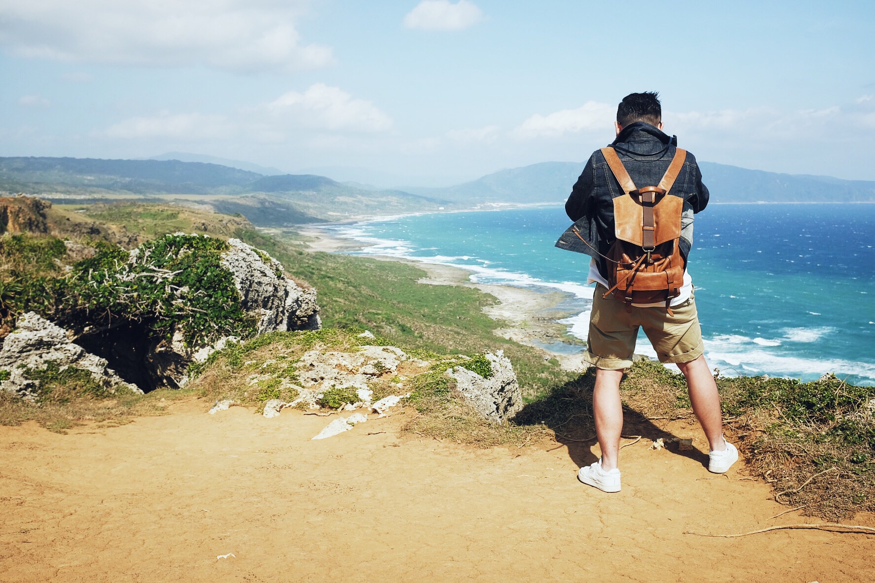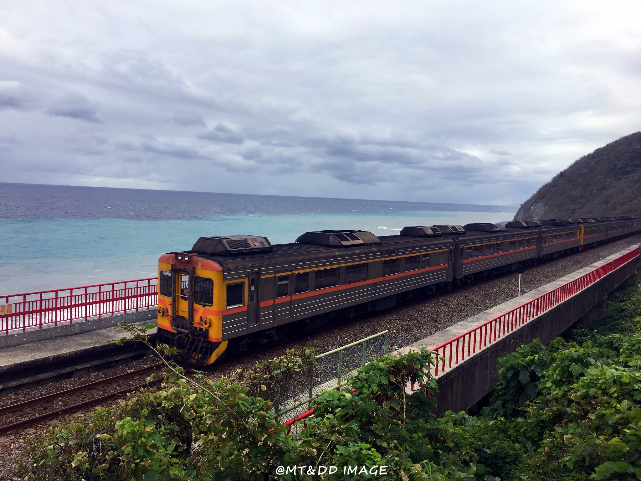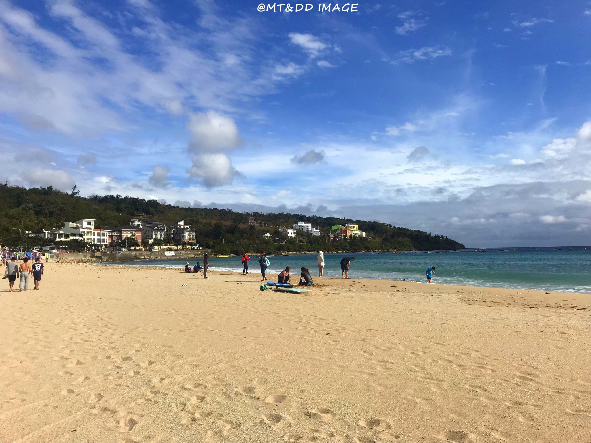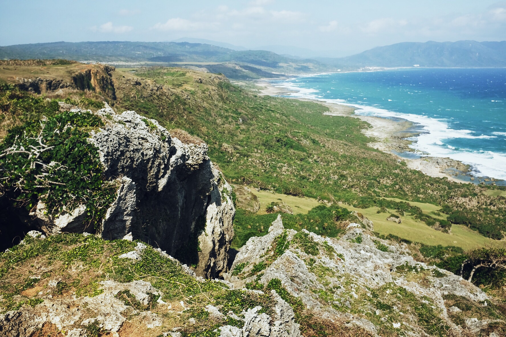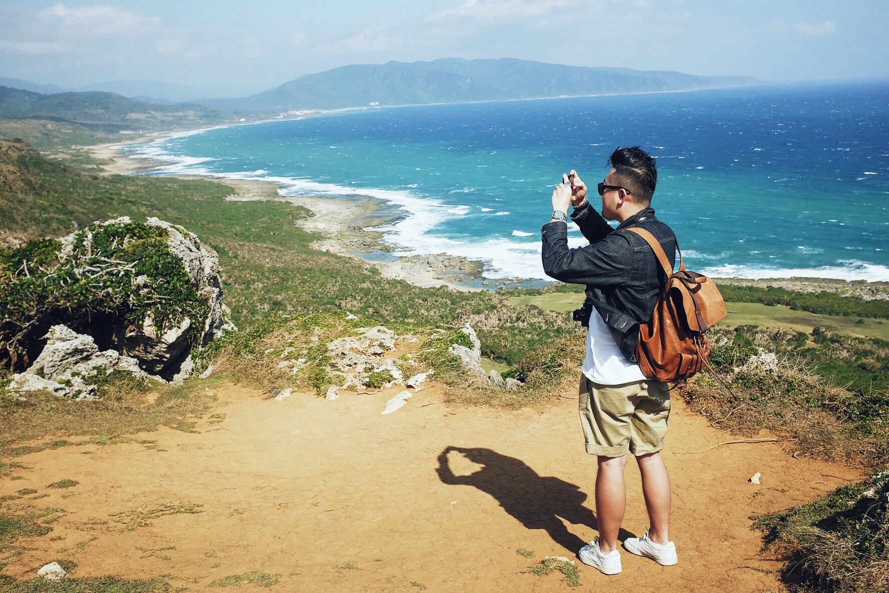 哇,终于开始像偶像剧般的,骑着机车乘着海风闻着海水的味道开始环岛!坐在后座有更多精力可以多看旁边的美景,比如海水的渐变和分层,还有越到中午越蓝(在