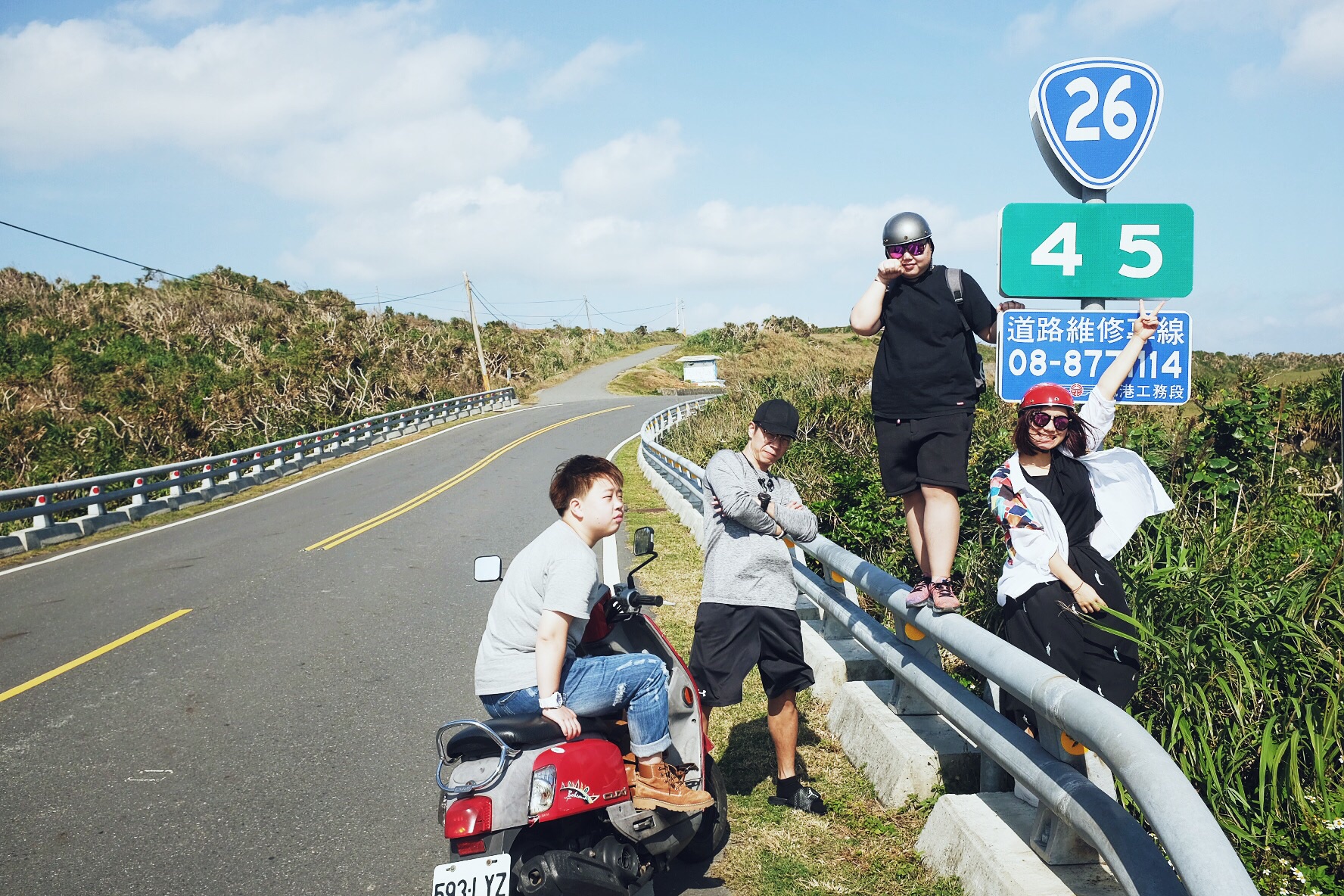 租机车除了要带好你的入台证还有签证以外最好你还要有驾驶证,然后还得找老板说好话,像我们五个人的话租机车都是分批的,人多老板也不敢轻易租出来给我们,毕竟他要承担比较大风险的)
