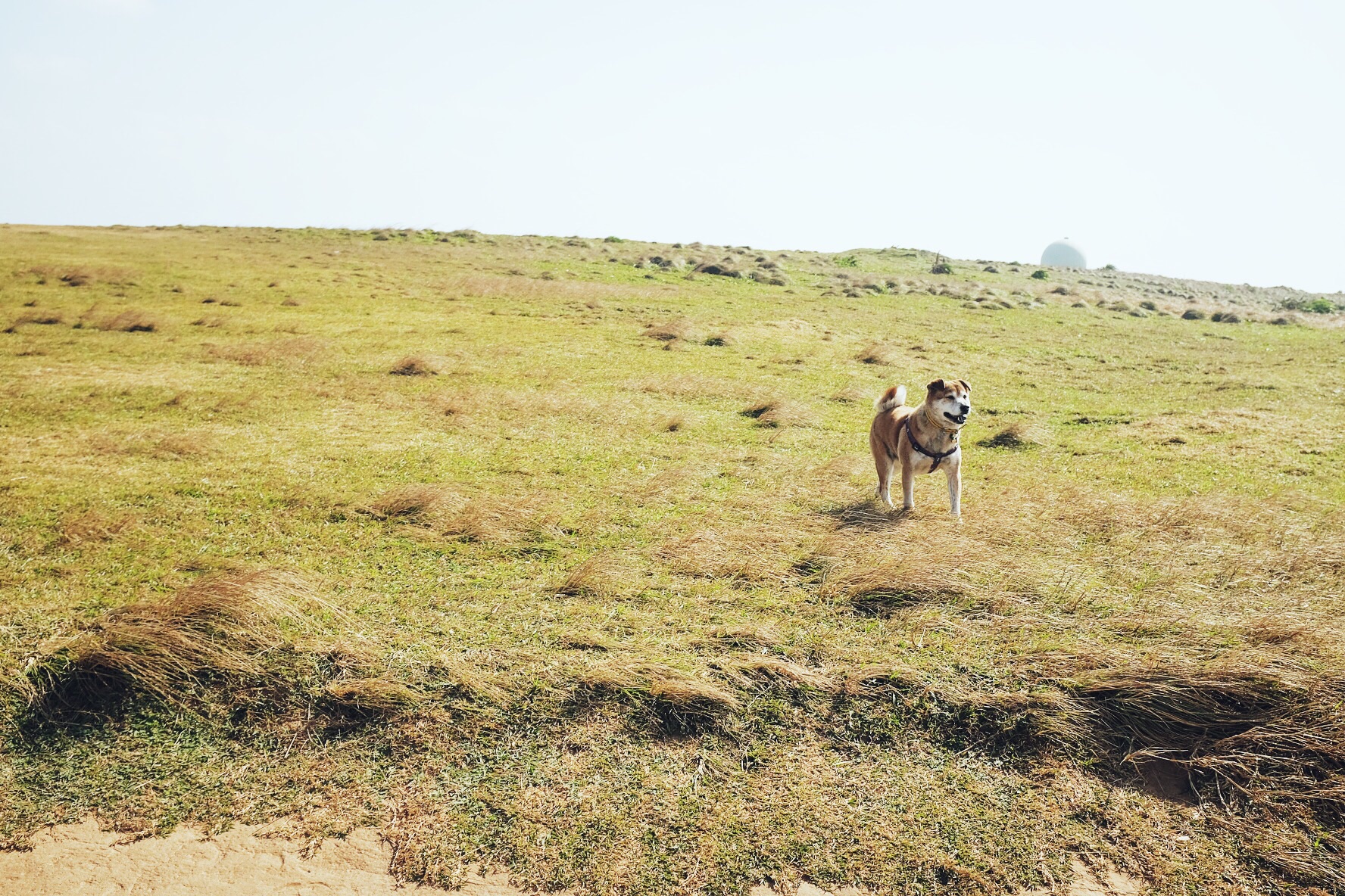 一路上我们走走停停,嬉嬉闹闹,在我们很喜欢的一个路标下拍了大合影,大家欢快的像个小孩,只顾着狂奔,还遇见一只和我们一样也喜欢大海喜欢