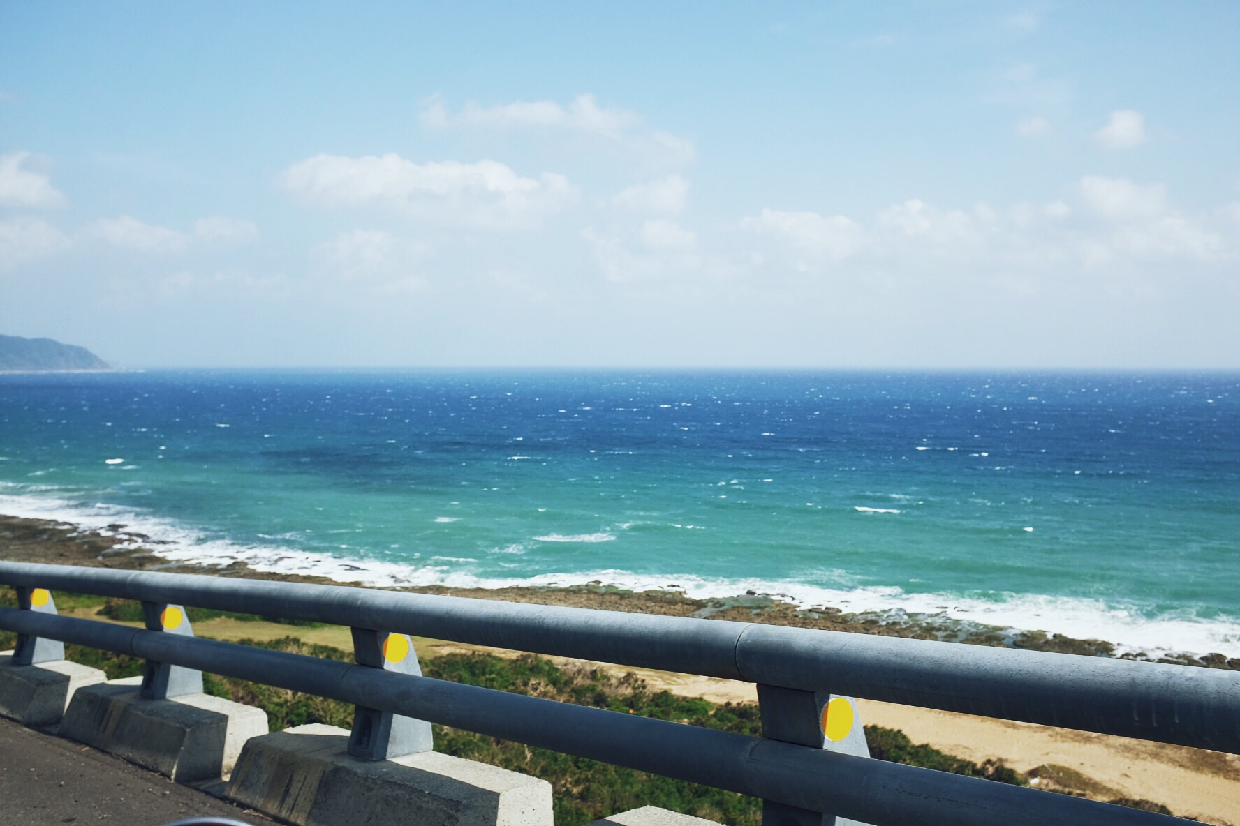 这个角度真的很适合留影一张,喝着旁边售卖机里拿出来的饮料看着远方,没有尽头的蓝色大海和远方