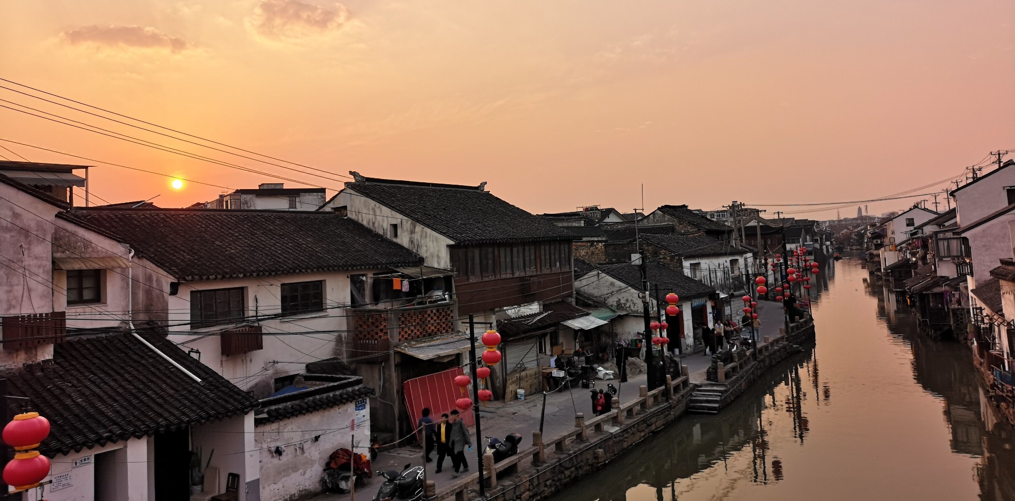五点多来到七里山塘,是最恰当的。因为既可以感受白天人群鼎沸的古街气氛,又可以逐渐体验夜色来临前的古街变化,夕 阳西 下,随着一盏盏红灯笼的点亮,小桥流水人家, 江南 生活顿时跃然眼前。