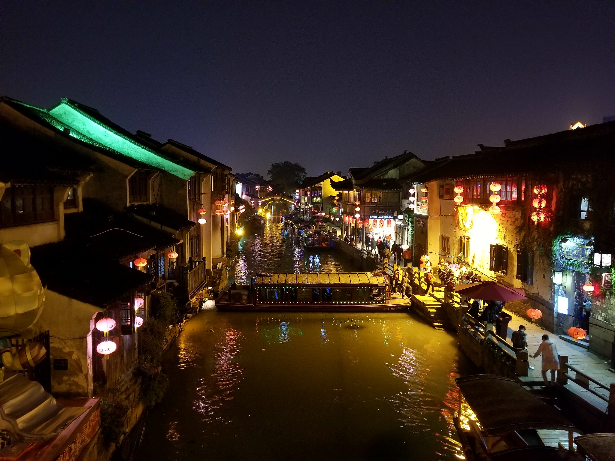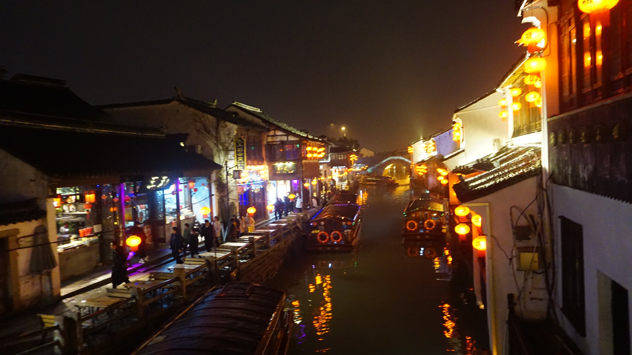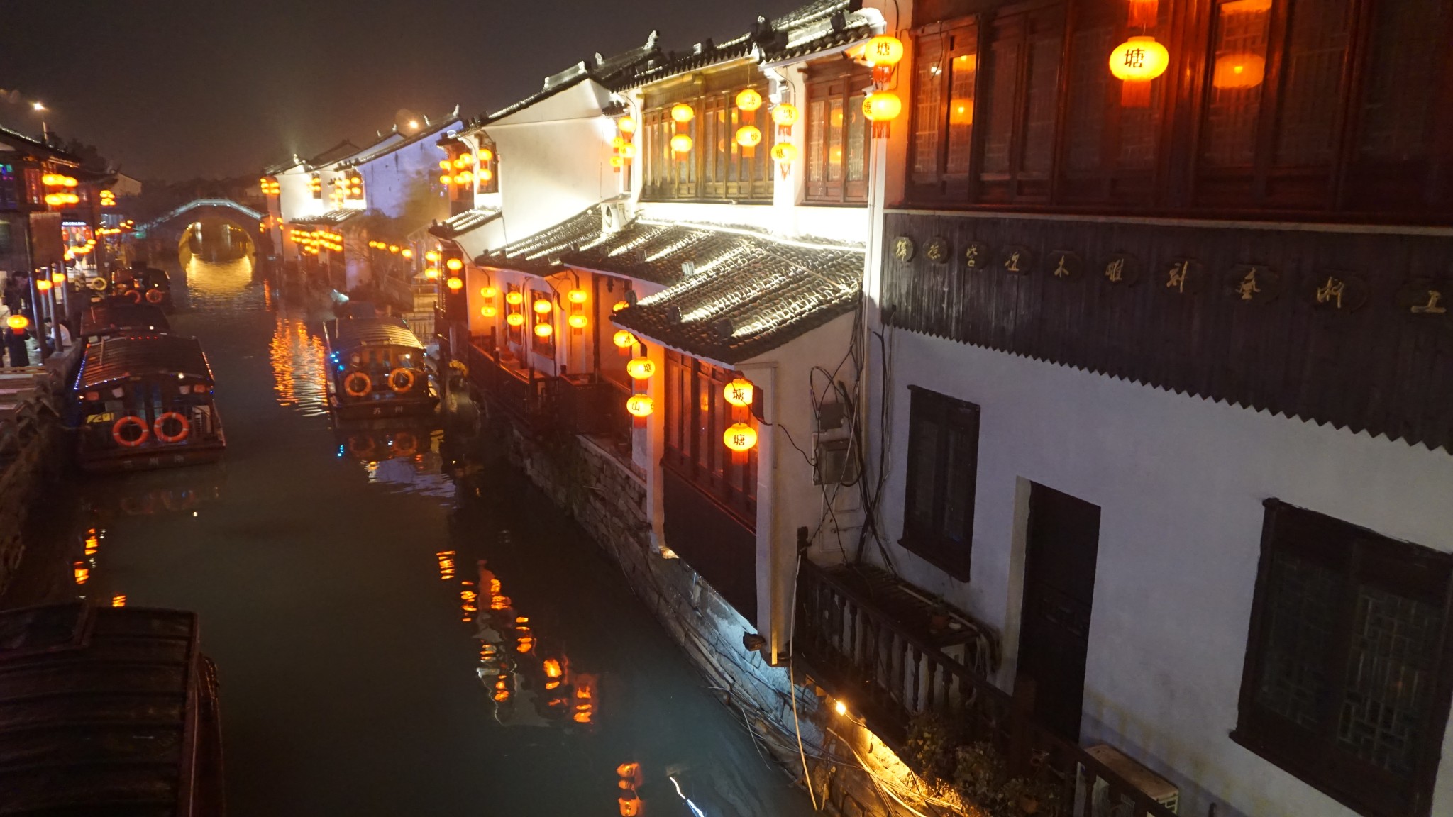 古色古香 夜游古运河山塘路走的差不多时,我们就可以折返回景区码头,在这里可以选择一艘游船,体验今天的主要项目,夜游七塘,真实感受一次 江南 水乡的韵味。