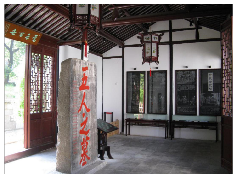 山塘街“古戏台”是一座坐北朝南的戏台,上下二层,呈正方形。台前铺砌的花岗岩石板空地,辟为游客看戏之处。两侧的厢楼,辟为书店、老照片收藏馆等文化场所。每逢双休日和节假日,戏台上就演出各类文艺节目。“古石桥”是横跨山塘河的七座石拱桥的总称,桥身有单孔,双孔,三孔等。其建造年代最早的可追溯到宋代。“五人墓”是我们以前语文书中学到的“五人墓碑记”里那五位反抗魏宗贤五位义士的墓地。