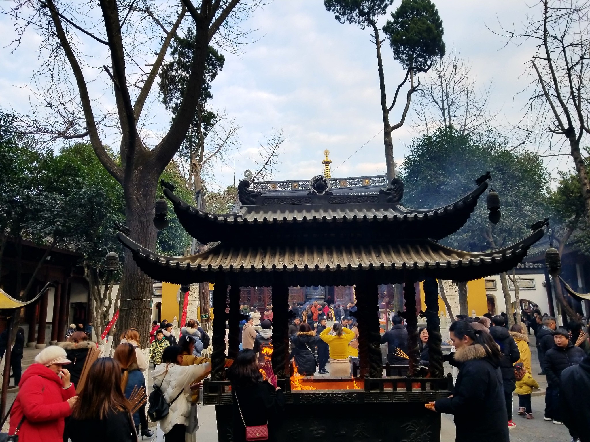 寒山寺当年唐代诗人张继在南下逃难的时候,正处在人生低谷时期,在寒山寺附近听到了钟声,才有了后来的千古绝句。这座千年古刹,到如今也是香火鼎盛,每年除夕和元旦的晚上,寒山寺都会举行敲钟仪式,敲钟108下,来消除人们的烦恼和困惑。此次前来恰逢新年来临,