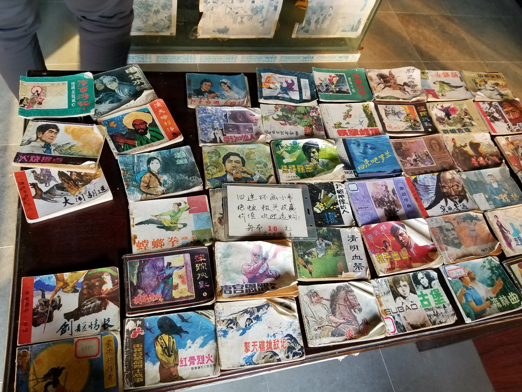 枫桥风景名胜区我走在这条仿古的建筑街上,四周尽是门可罗雀的商店,卖的多是一些古董纪念品类的,对于这类型的店铺,我向来是不感兴趣的,一来是自己囊中羞涩,二来是品味尚未达到如此高雅的阶段。唯有一家店铺吸引了我,这里有着不少的我记忆中的老物件,包括旧海报、连环画书籍等,许是每个时代的人都有自己的记忆,这我看起来就格外的亲切了。