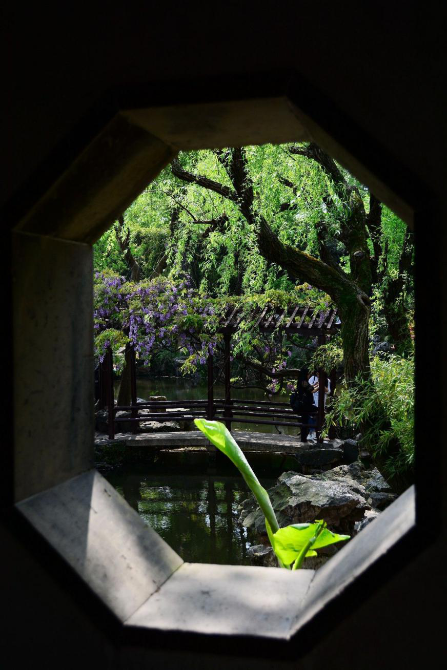 留园我到留园的时间是9月份秋天,也许是人不多的原因,不算冷的秋风伴随着缓缓落下的树叶,给留园大街一种冷清萧瑟的感觉。留园不大,给我最大的印象便是小而精巧,布局严谨,房屋错落有致,其中的窗景更是一绝,各种形状的窗户就像一个相框一样,给窗外的风景一个别致的视角,从室内看往屋外,和身处户外完全时,是不一样的感觉。