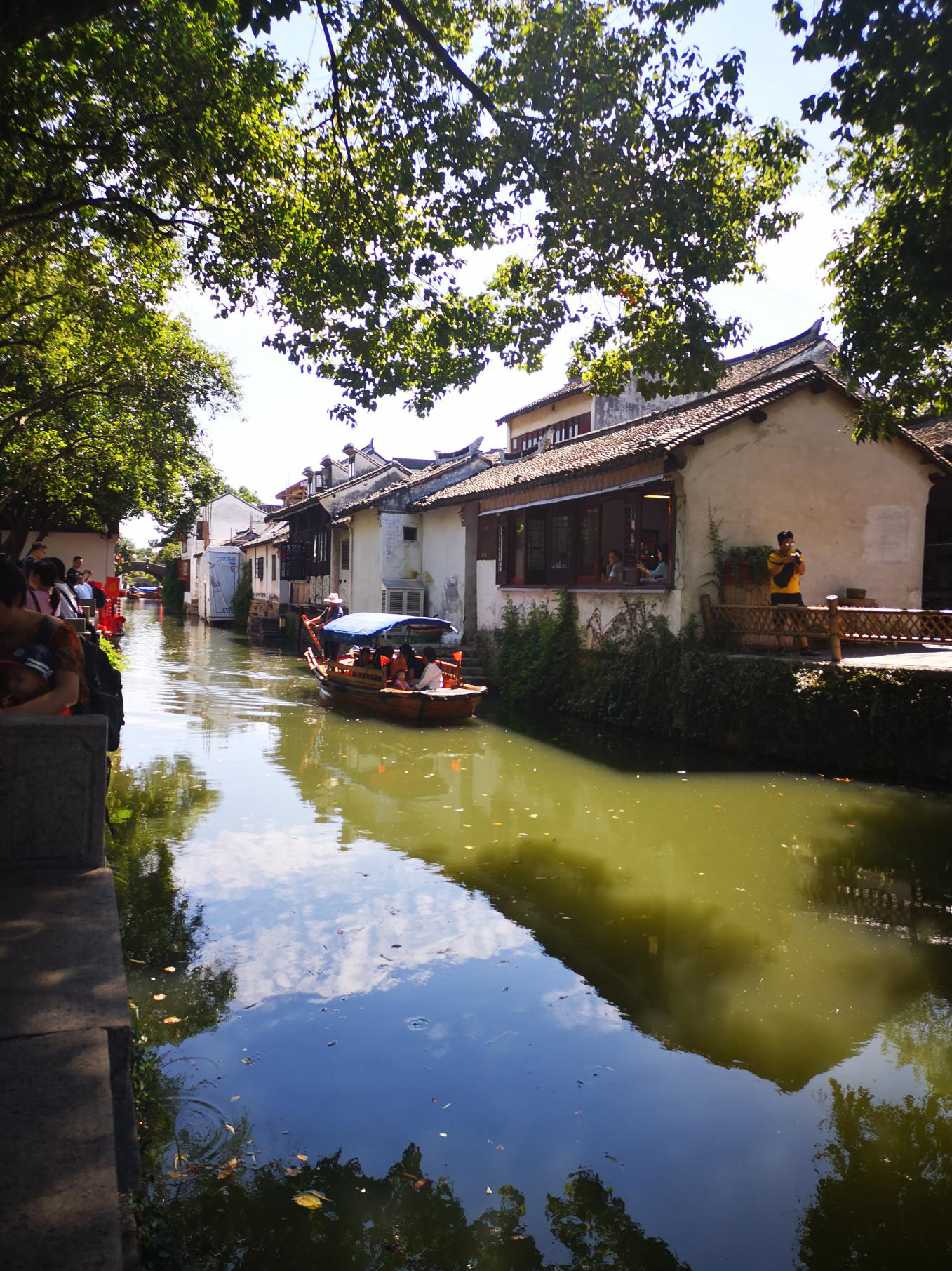 是建立在湖畔的一座小镇,镇内水系发达,纵横交错,我所到之处,几乎家家靠水,就像东方的威尼斯 。推开一扇窗户,窗外就是一条条春意盎然的河流,水底下的植被把整条河流都渲染成绿色。加之河流四周的树木投下的绿茵,就好像到了画中一般安静。小船轻轻划过,船桨带起一阵阵的涟漪,又给了这安静的画面一丝灵动的气息。