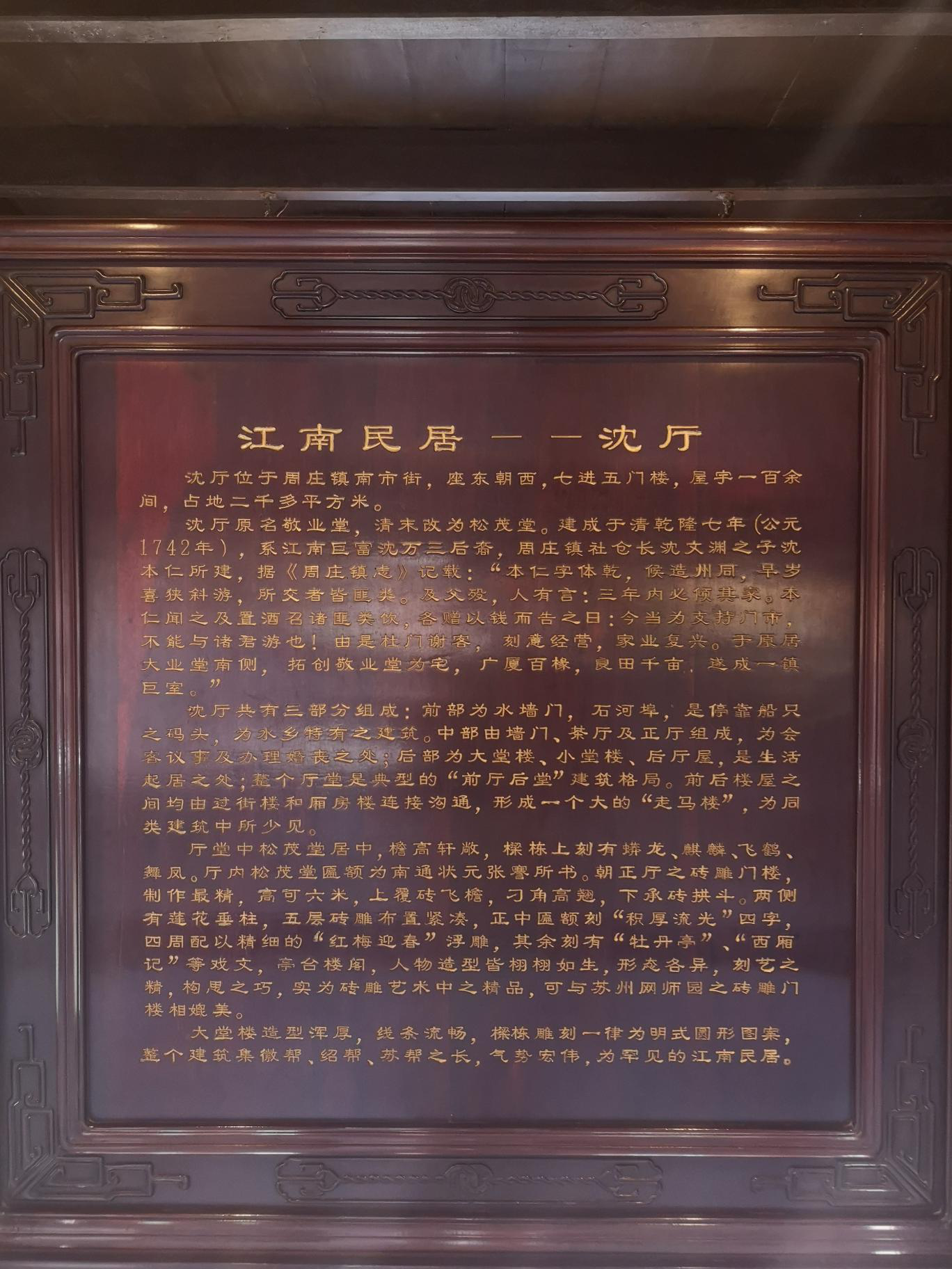 有两个必游的建筑景点,分别是张厅和沈厅。张厅是古时一个姓张的富商的宅院,带有浓厚的江南 特色,至今保存完整,装饰考究,院中还有后花园和池塘供人散心娱乐。沈厅是 大名 鼎鼎的富商沈万三后人的宅院。占地两千多平方米,至今也是保存完整。