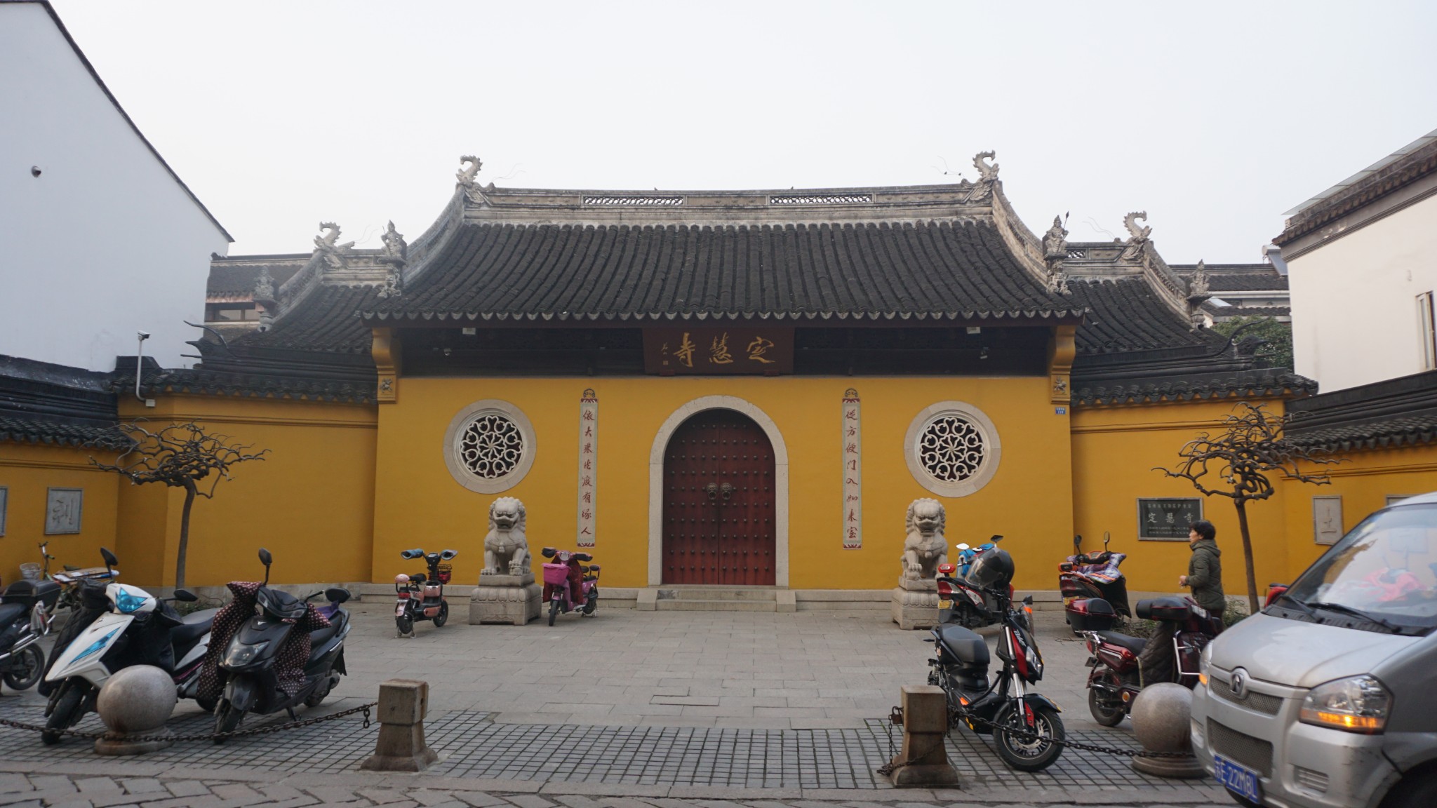 回型布局的寺庙-定慧禅寺定慧禅寺,据唐代道宣和尚撰写的《续高僧传》记载,隋开皇十一年十一月,晋王杨广(即后来的隋炀帝)在 扬州 金城殿设千僧斋,邀佛教 天台 宗实际开创者智顗大师赴宴,智顗大师应邀赴 扬州 授 菩萨 戒,途径如皋 ,发现如皋上空佛光四射,认定这是一块宝地,于是在此诛茅建庐,当时取名“定惠寺”。宋代时,由于兵火洗劫,定慧寺已经颓败,只剩下断璧残垣。宋元进士:曾任 如皋 知县的史声写过一首凭吊定慧寺的诗:寺名定慧知何代,桥古碑横不记年;古树乱鸦啼晚照,故园新碟舞春烟。七层宝塔化成路,五色云衢散上天;惟有玉莲池内水,沧浪深处老龙眠。现存的定慧寺主体建筑系明朝万历年间重建。那时,有个叫素芳的和尚带着性乾、性德两个徒弟来到定慧寺,稍加修葺就暂时住下了。性乾决心修复定慧寺。为了筹款他用油灯烤脚踝、用铁索盘胸等以示虔诚的手段向大众募化。善男信女深受感动,纷纷捐助。明万历三十年,重修寺院工程动工。不久,大殿便落成了。性乾又立誓取海外的檀香木雕刻佛像。于是他偏袒南游。后来在郁林洲从海外归来的商船上获得一棵一丈六尺长的檀香巨木并就地雕成毗卢大佛(如来佛祖)像。万历四十三年佛像运抵 如皋 ,置于大殿内。在此期间,寺中湛明上人募建了钟鼓楼,云石上人募建了藏经楼, 德林上人到 嘉禾 购买了藏经收藏。德林上人德学兼优,影响深远,定慧寺空前兴旺。禅寺,平面布局呈“回”字形,外为楼堂,内为殿宇,布局严整,建筑宏伟,这是一座历史悠久、风格独特、高僧辈出的千年古刹,人们称它为 如皋 境内的古寺之最。