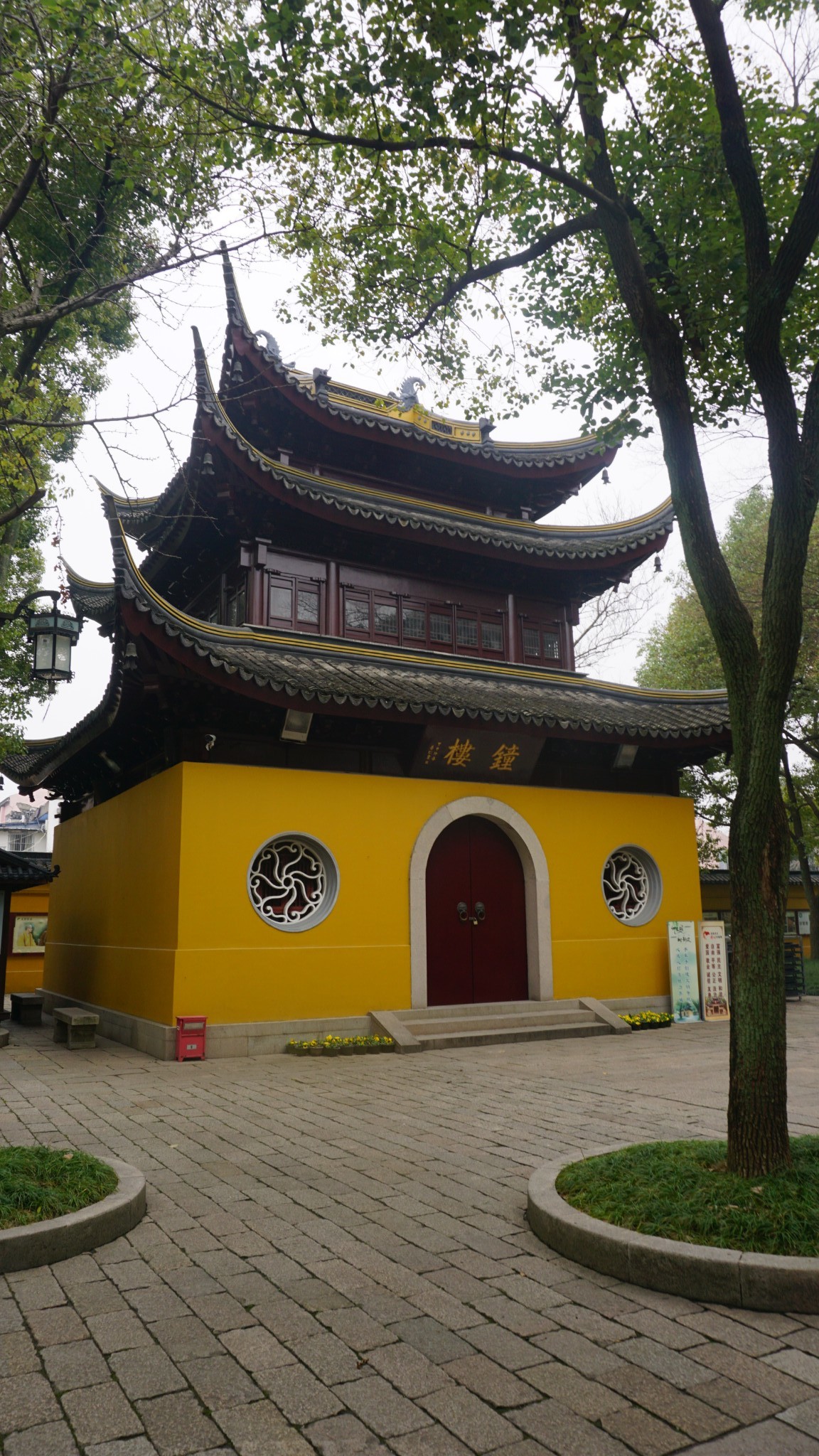 的石板路小巷,或是站在枫桥桥头,抬眼即可见碧瓦黄墙的寒山寺坐落在绿树丛中,院内 青松 翠柏,曲径通幽。因诗而来,大概人多,也许并不是诗人所处的深夜,没有了诗里的意境,也没有寒山的感觉。