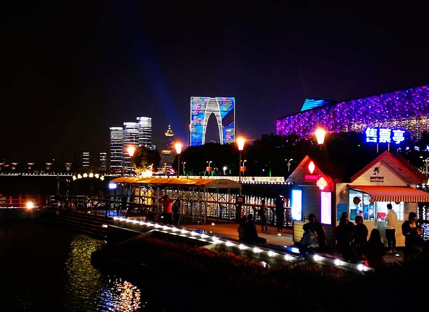 山塘街 自古繁华,山塘街位置特殊, 东至 红尘中“一二等富贵风流之地”之称的阊门闹市,西至“吴中第一名胜”虎丘,自古代就是繁华的旅游商业街,全长约3600米,现如今比较繁华的地方约是1000米。山塘街的两条街道,一条街是沿河街道(如下图),一侧为山塘河,一侧为街。河边有码头,可供游人搭乘游船穿行。也有不少的河畔露天餐厅、咖啡馆、酒馆,休闲吧,靠着 河边坐下,点上一份披萨,几瓶啤酒,零距离体验河畔风采,当真有种“欲为窗下寝,先傍水边行”的感觉。