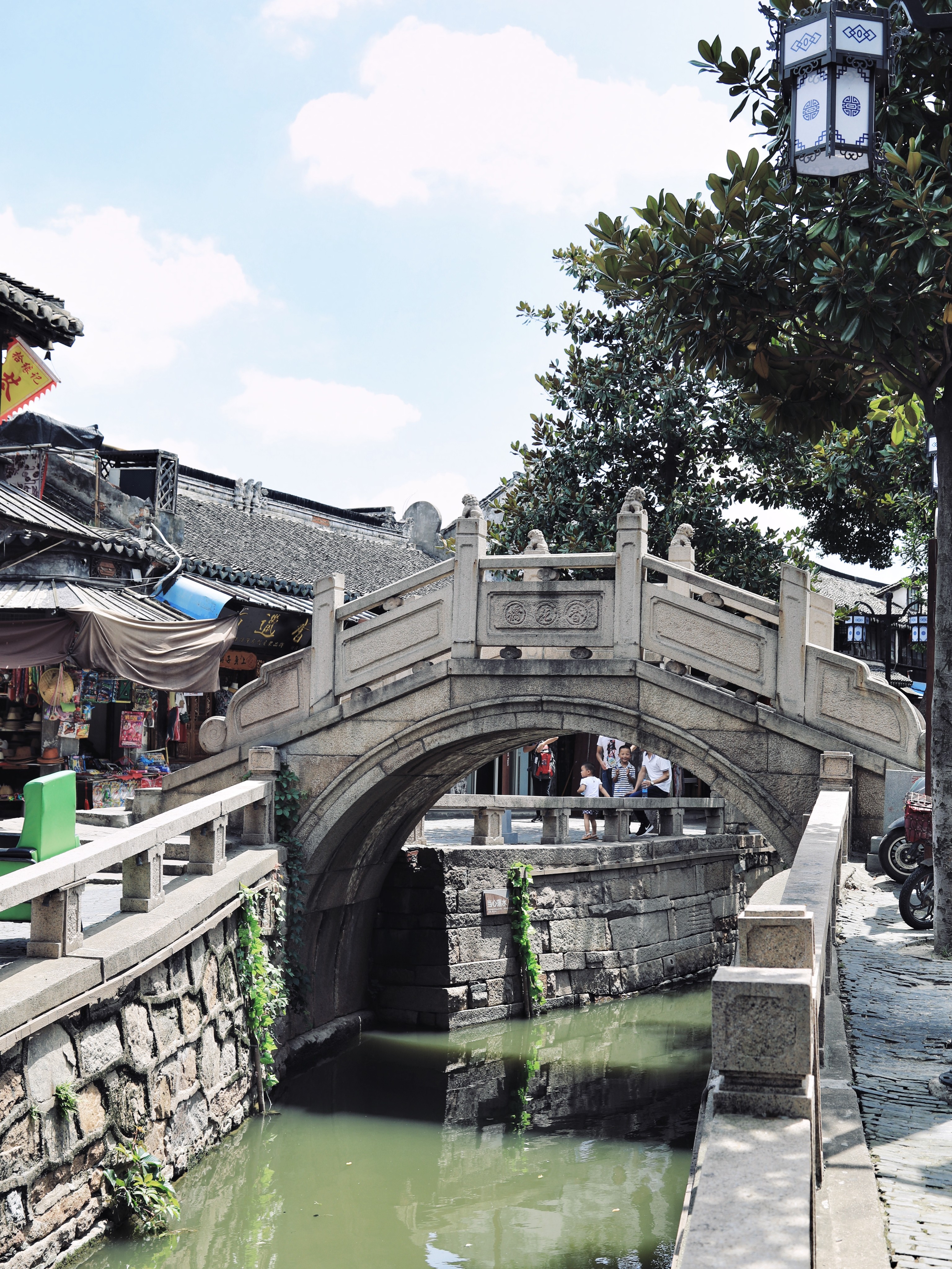 古镇 是位于 郊区的一个古镇,有“ 江南 第一水乡”之称。镇内河流纵横交错,至今仍保存有14座完整的石拱桥和数百间明清建筑。