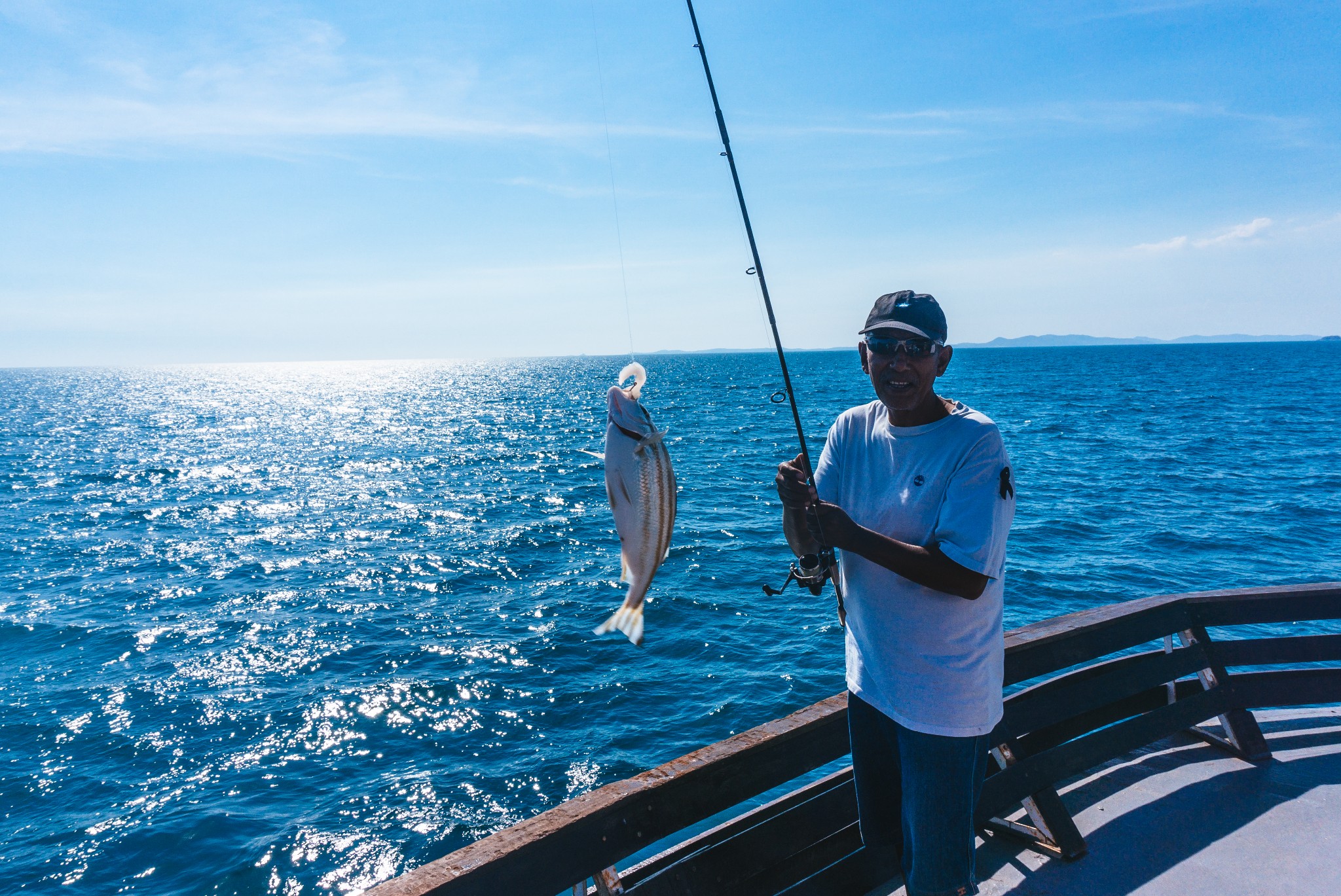 钓鱼的欧美妹子,貌似这船上,她和他男友是唯一的欧美人