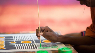 根据梦幻时光的神话故事,精灵米米最先在岩石上绘画。他们教会一些原住民绘画,而其他原住民则通过临摹米米绘画来学习。 有些先祖精灵会进入岩石幻化成岩画,使这些岩画成为了梦幻之地。