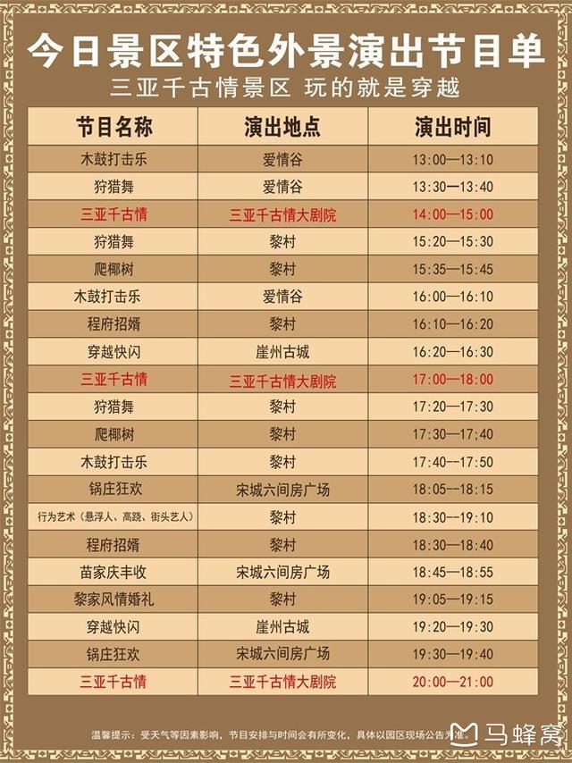 7、开放时间:10:00-21:30(三亚千古情演出);10:00-20:00(三亚宋城冰雪世界)