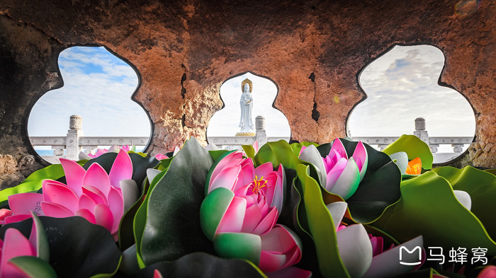 南山文化旅游区是一个综合体,小火车沿途大概八站路。当然按我个人的理解,后续的景点纯粹是为了打包以扩大景区规模,提高票价的产物。 中国 有两尊特别有名的 南海 观音像,除了眼前的这尊,当然就是 普陀山 的那尊了,哪里去了十几次了,这里还头一回来。 果然是几天中天气最好的一天了,天气好了,心情也是愈加的好。除了常规的拍摄角度之外,我还是喜欢下面两张特别点的视角,喜欢摄影的人都应该善于发现,精于调配,敢于创新,无论我是否做到,也算是对自己的一种勉励和鞭策吧。