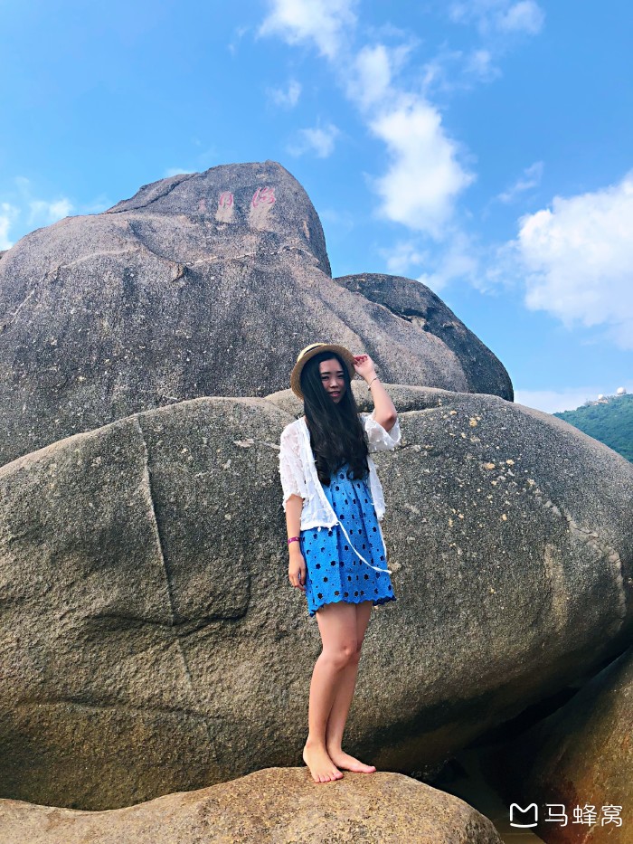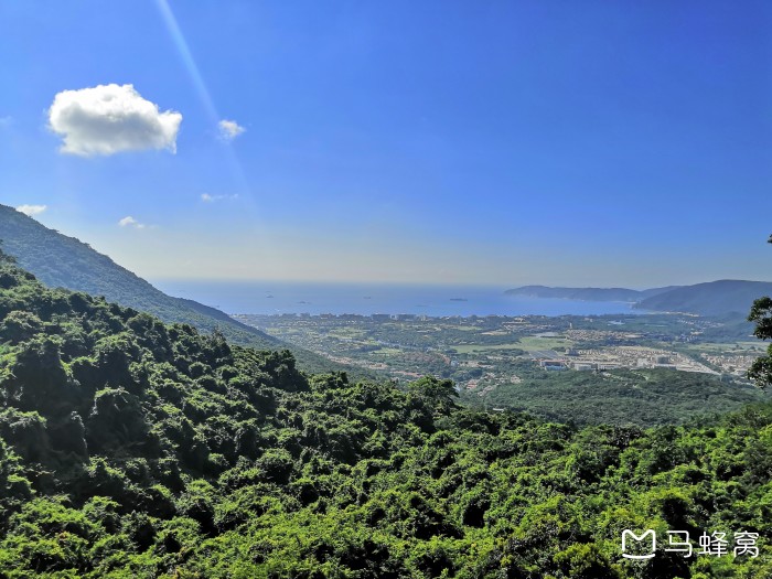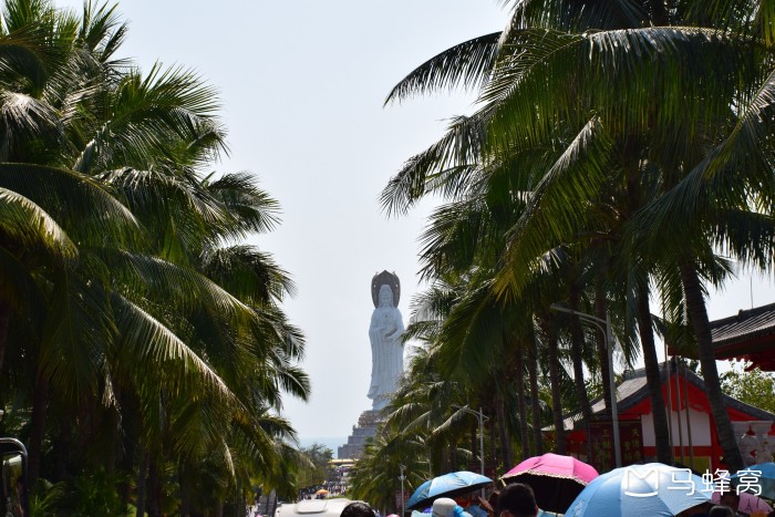 特别有名的南海观音。此时正是下午,晴空万里,于是依旧是临时决定转道去南山一游。 在百度导航的引导下,我们开上了通往南山旅游区的公路旁边的一条土路,起初发现不对,问了路人,还肯定的向前一指说没错往前。之后便是仅供一车通行的盘山 公路,而房车在这上面行驶的就十分吃力了,原本一上盘山路就晕车的奶奶在这段紧张的错行之路上, 成功的治好了自己的晕车症,吓出一身冷汗。而两个小家伙则是一度颠簸,索性晕睡过去。直到最终开到距离导航显示终点一百米的地方,我才死心,承认被傻傻的百度坑了一把。莫名的开上南山,还得默默开下去,我依旧是发挥了自己随遇而安自娱自乐自我安慰的本领,从山头上拍摄了一张南海 观音,这和普通游客的视角还是不同的。当然你说无人机飞一圈不是更省力么,我很负责任的告诉你,军事禁区,想死请便。