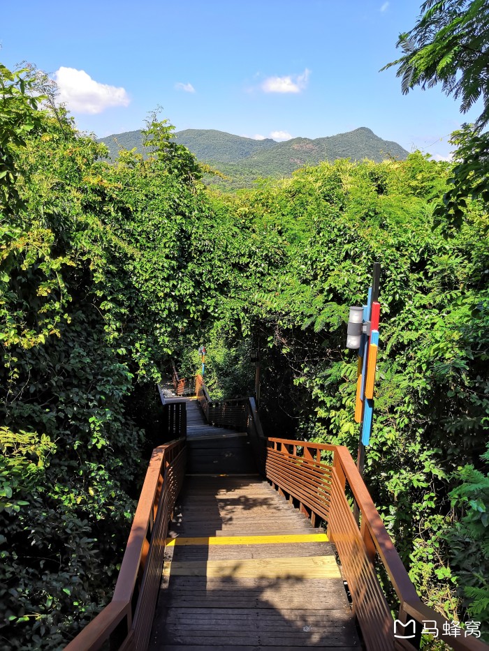 顺着步行道往上走,景色也越来越好,我是超喜欢这种人文加自然的组合,索性直接放弃了乘坐电瓶车步行,拾级而上在雨林中穿梭寻找一个一个的吊脚小竹楼