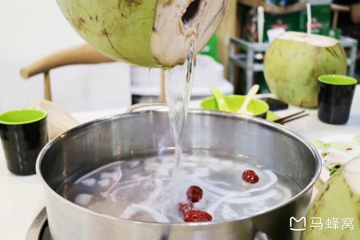 美食推荐二:新鲜椰子汁海鲜加工店门口的椰子,青色和黄色两种,口感差不多,各来一个。这都是在林姐家买的,挑了甜的