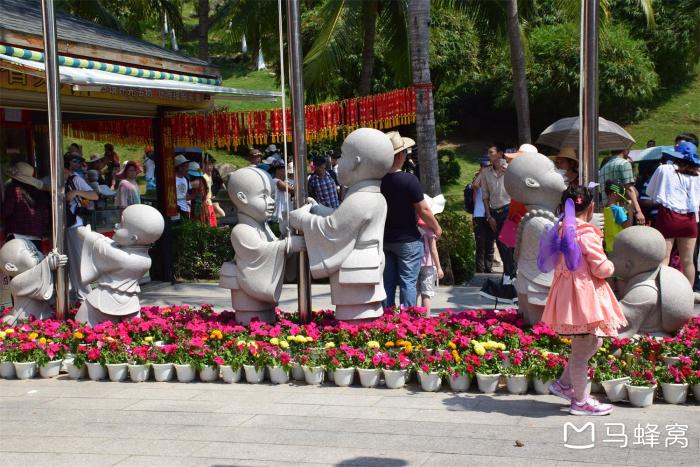 此外,不二法门、长寿谷、如意吉祥园等也是人气颇高的签到处。有时间的话,不妨再往祈愿树的树梢上挂一个祈愿牌,寄托一份祝福和希望。南山文化旅游区南山文化旅游区是一座展示中国佛教传统文化的大型园区,内部景点繁多,但108米海上观音是当之无愧的亮点之一。 主要景点有南山寺、南海观音佛像、不二法门、十方塔林与归根园、佛教文化交流中心、素斋购物一条街等。 世界上最大的一尊海上观音也坐落在此,像体为观音造型,三面示人,宝相庄严,高108米,造价1.9亿人民币,是闻名全海南的“镇岛之宝”。 园区内有素斋餐厅,提供“寺院素斋”自助菜肴,还有宾馆提供住宿,游览拜佛都非常的方便。 Tips: 南山拒烧高香和带大香入园,园区内各个佛教道场均免费赠香礼佛。Top 7 鹿回头山顶公园亮点:南海情山、观赏夜景最佳去处