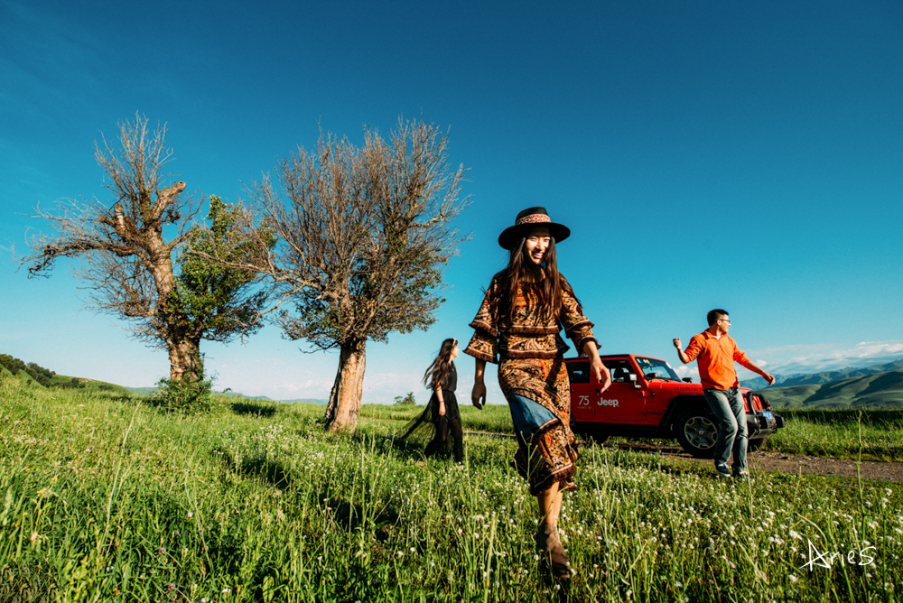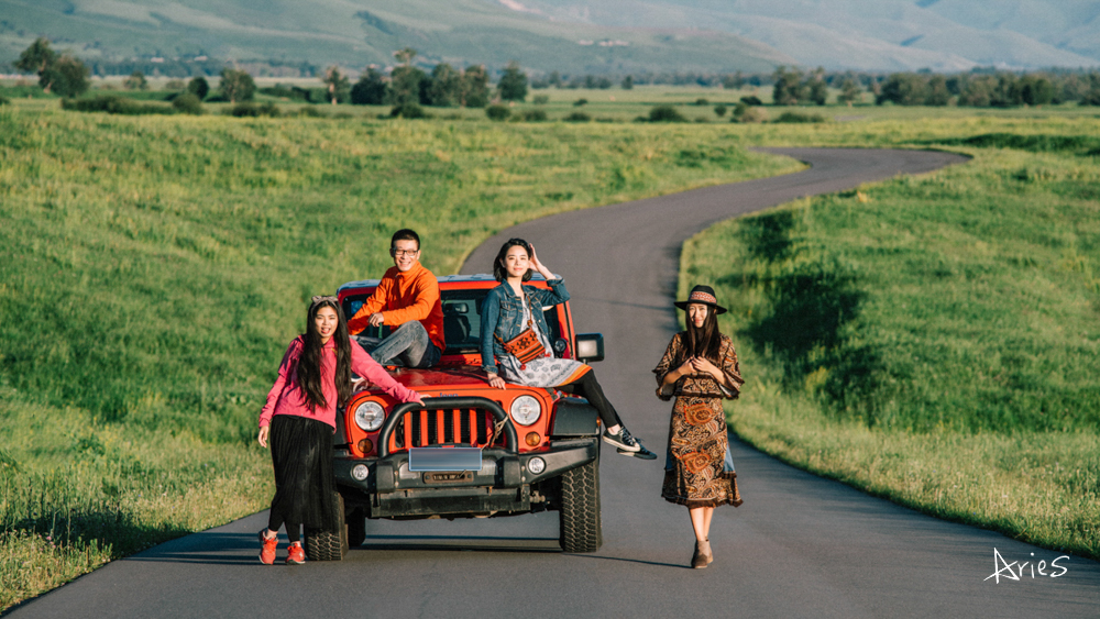 技巧一:使用脚架,在相机内设置2-5秒一张间隔拍摄模式,接下来各种动作随意海起来,成功率妥妥提高。后期再进入PS里挑选每个人最好的姿态,皆大欢喜。