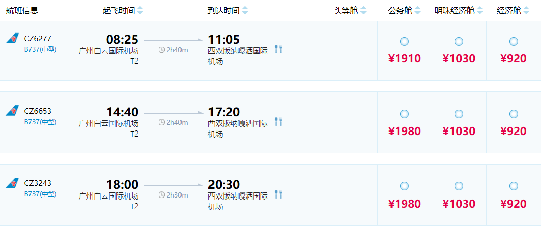1、目前广州没有直达西双版纳的高铁,可以从广州南乘坐G2926到 昆明南,当天换乘城际由昆明南-西双版纳,不过不过总时长约10小时左右。2、推荐乘坐飞机:南航有广州直飞西双版纳的航班,折扣票价约5.1折,飞行时间约2个半小时,另外东航也有昆明转机的航班。 ========== 如...显示全部