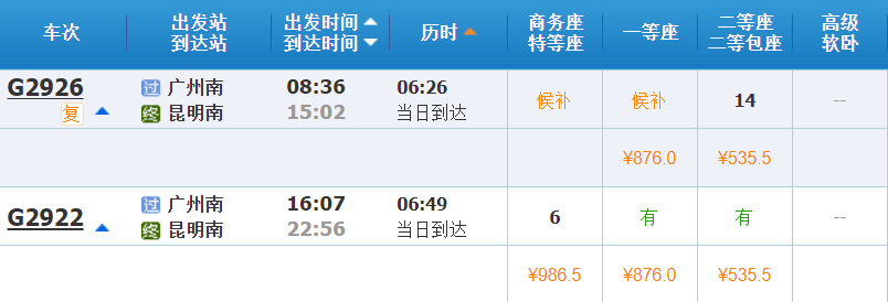 坐飞机到西双版纳才是最快的,当然要经停昆明。如果不坐飞机,就从广州先坐火车到昆明。K365/K364 广州 - 昆明 13:58 - 15:02 1天1小时4分 硬座 192 硬卧下 351K483/K482 广州 - 昆明 21:08 - 23:00 ...显示全部