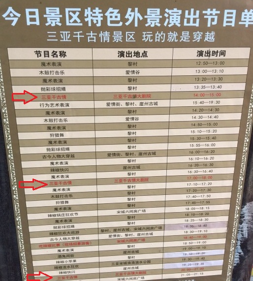 蜂友你好,晚上可以去看千古情表演, 这个千古情表演一天分3个场次,下午2点到3点一场,下午5点到6点一场,晚上8点到9点一场, 里面有四个独立的以三亚历史背景编的小故事。大概分别有15分钟,总共表演一个小时,场面挺震撼的。门票价格是千古情景区加上三亚千古情大剧场表演的联票280元每人,网上买...显示全部