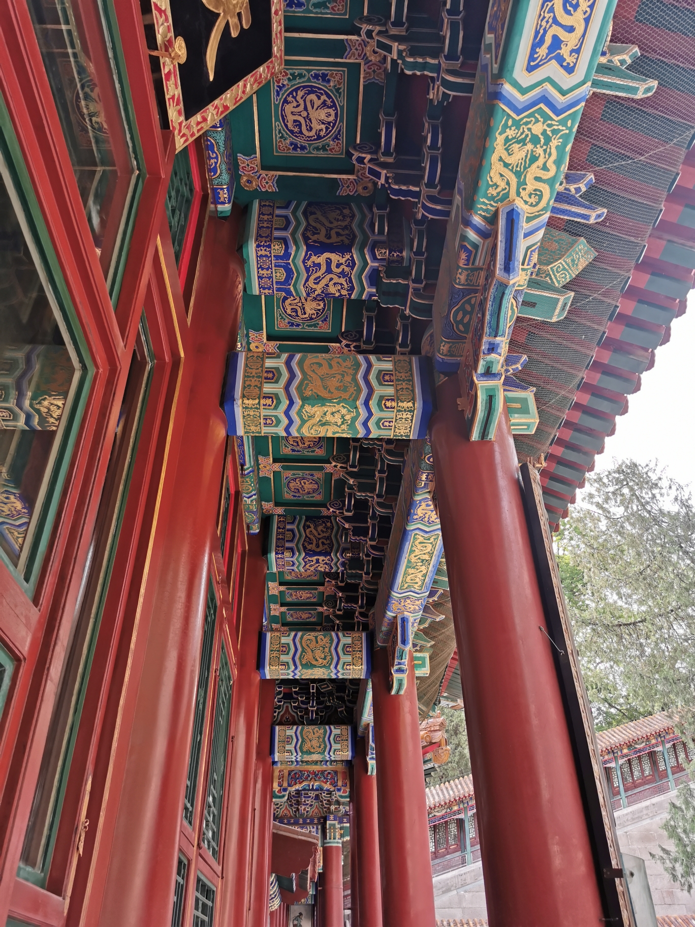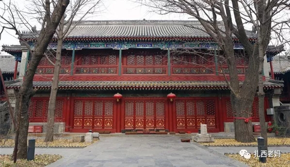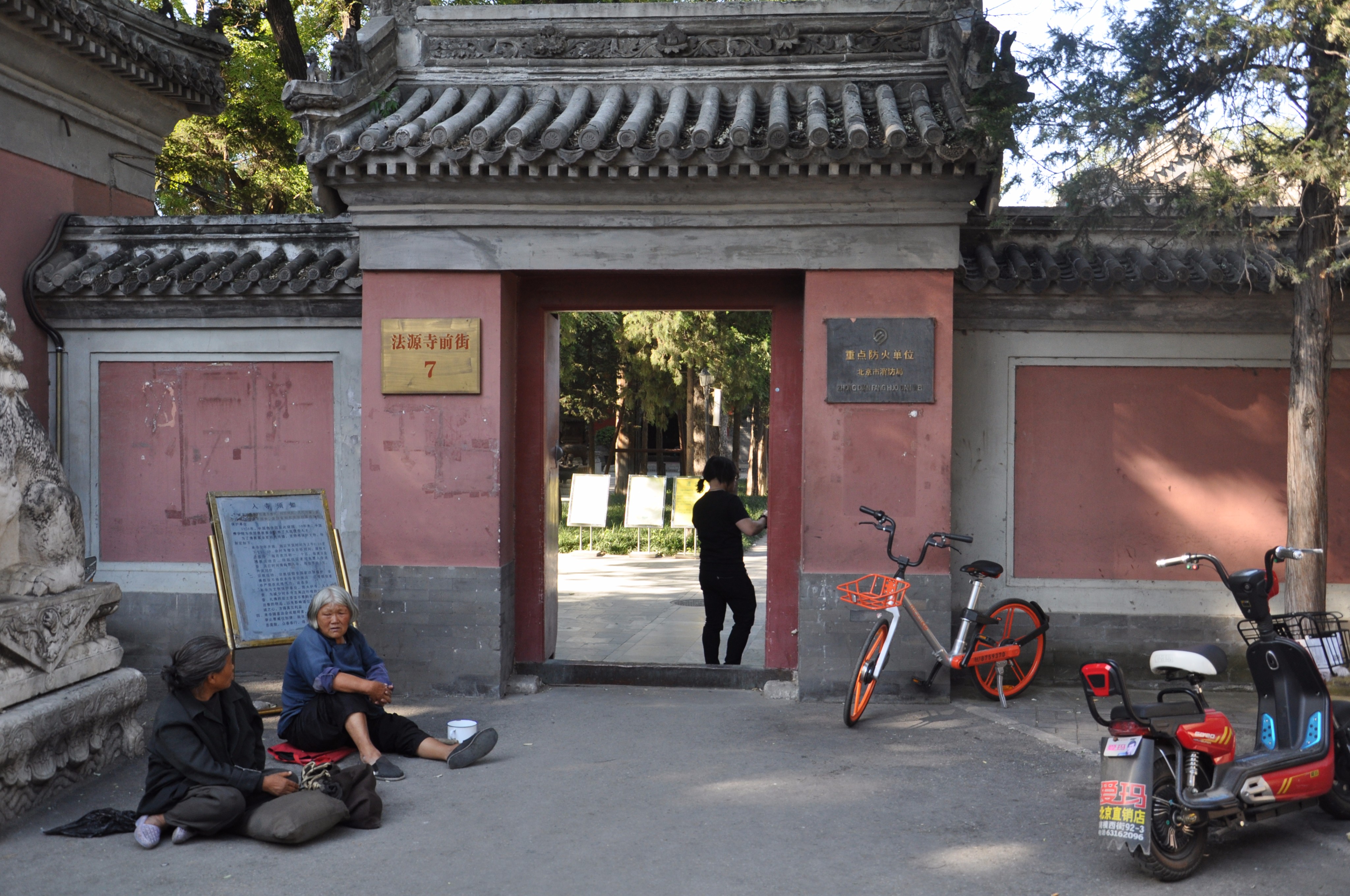 法源寺》让这座深藏于小胡同的幽静寺院名声在外。寺里有志愿者老师讲解古代建筑。大殿旁的展板上展示着建筑学家梁思成先生的《 中国 古代建筑》,从唐到明清历朝历代木结构的演变、每个时代建筑的主要特征。二层的藏经楼外沿呈略有弧度的下悬线,加有木枋。据老师介绍,木枋没有实际的支撑作用,弧线外沿和木枋只是从外形上仿效唐代建筑,明代工艺技术已经不需要增加木枋来支撑房顶。
