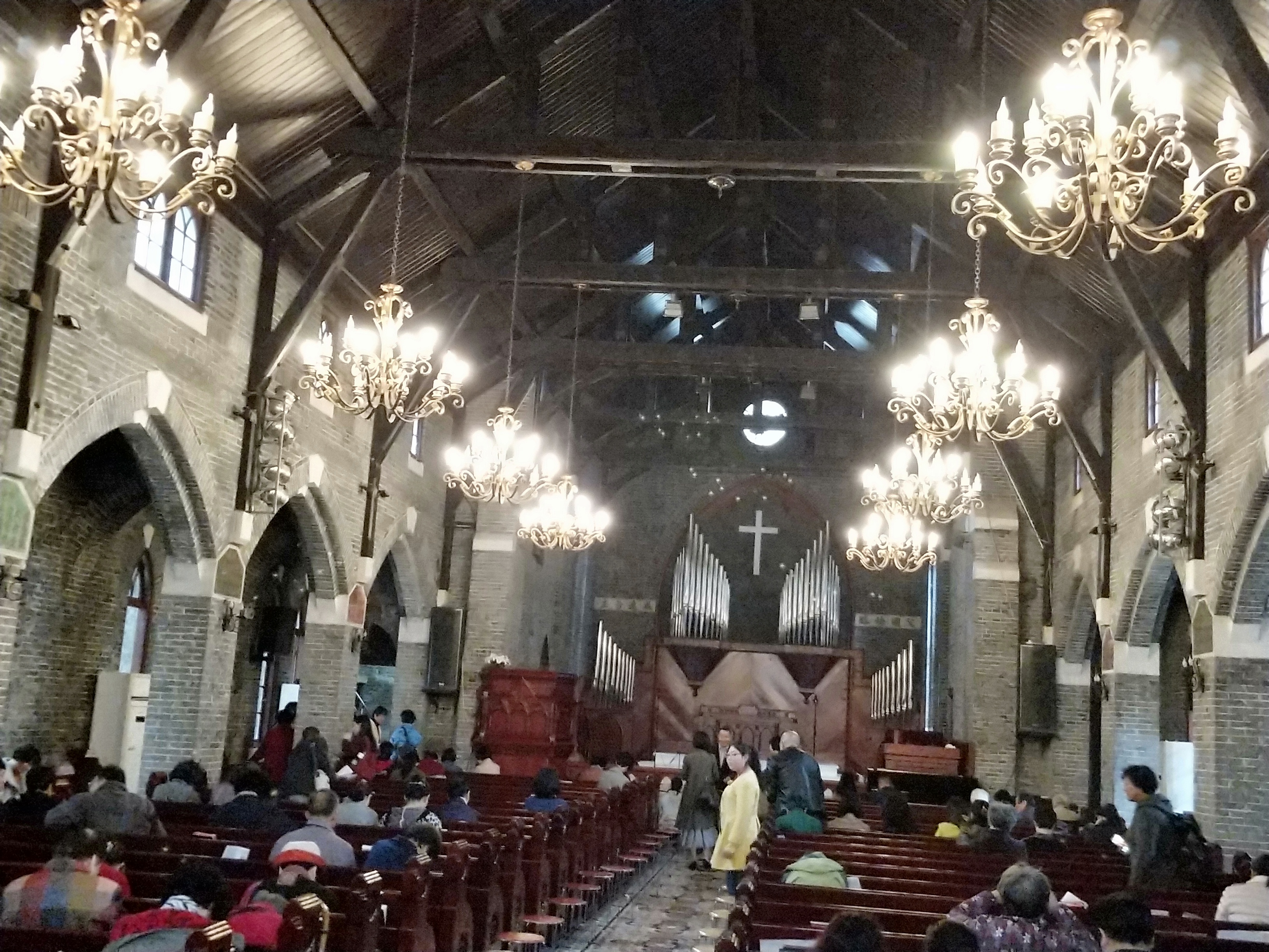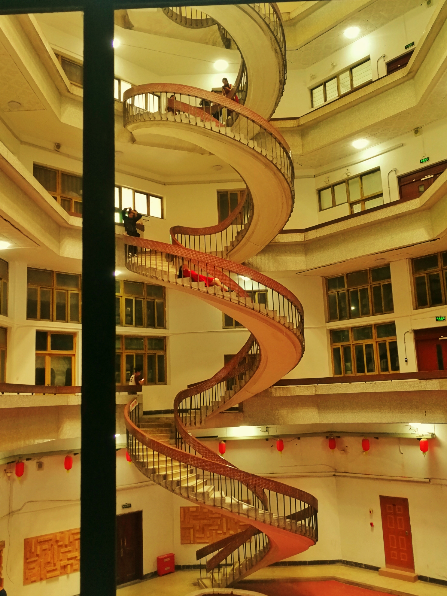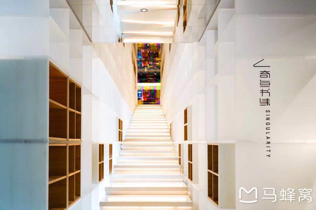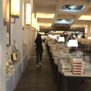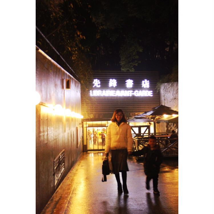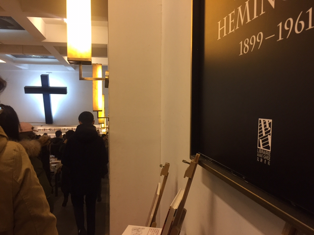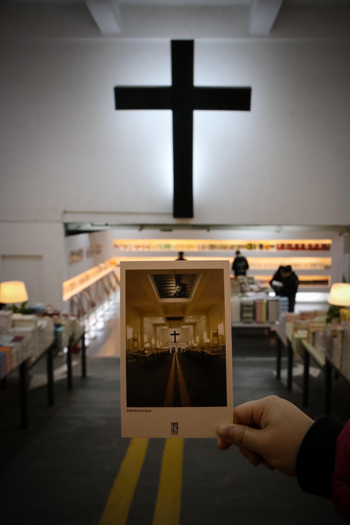 先锋书店书店内的布置很简单,大片的书架让人看花了眼,直走到底向左转沿着坡道向前走,然后转身,你会看到一个巨型的十字架,有种说不出的感觉。