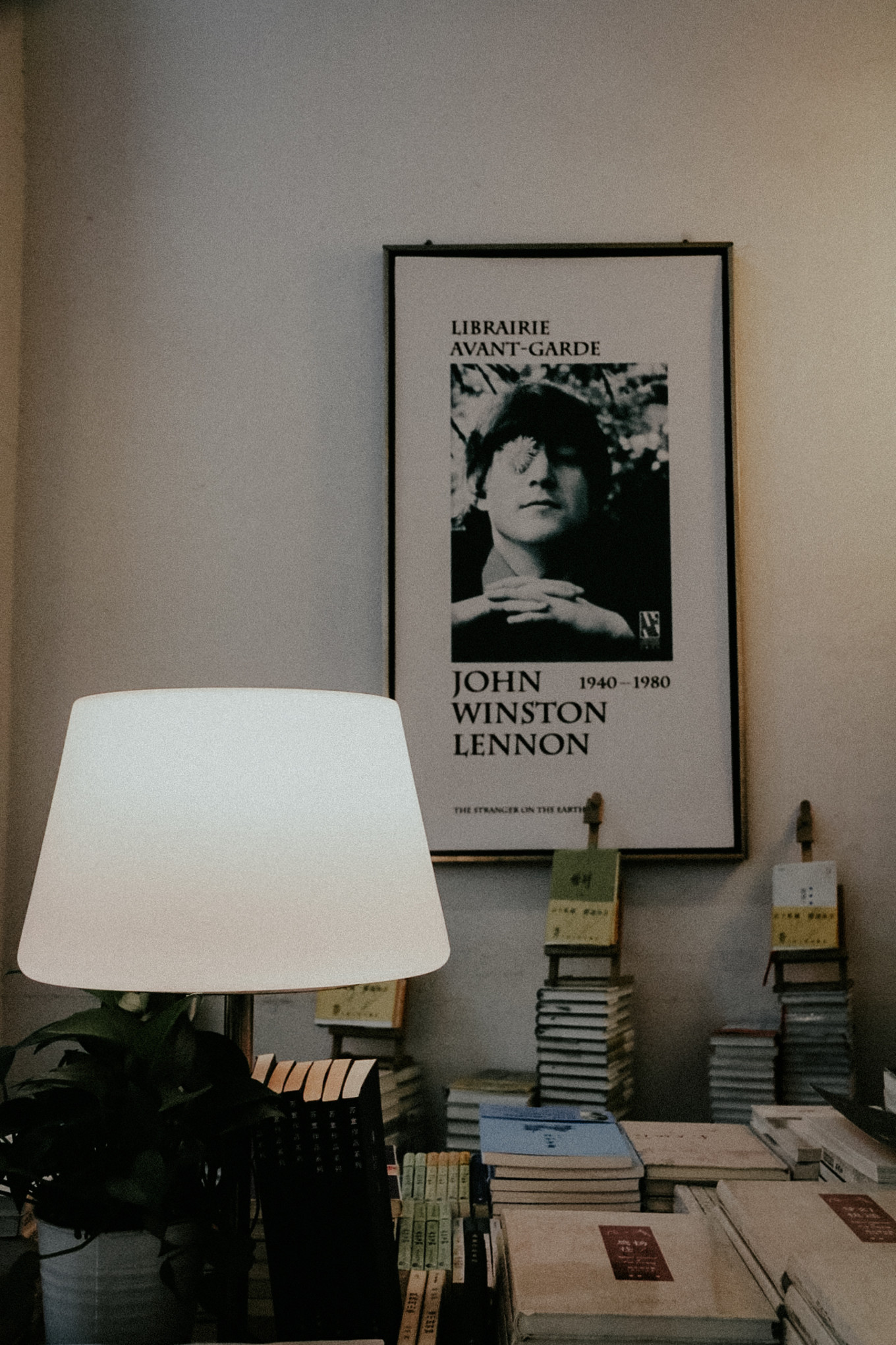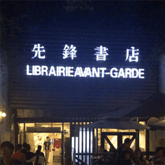 先锋书店两边的墙上挂满了艺术家的画像,搭配几句简短地话语。