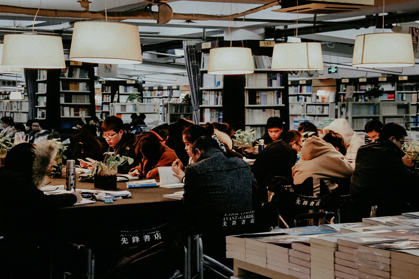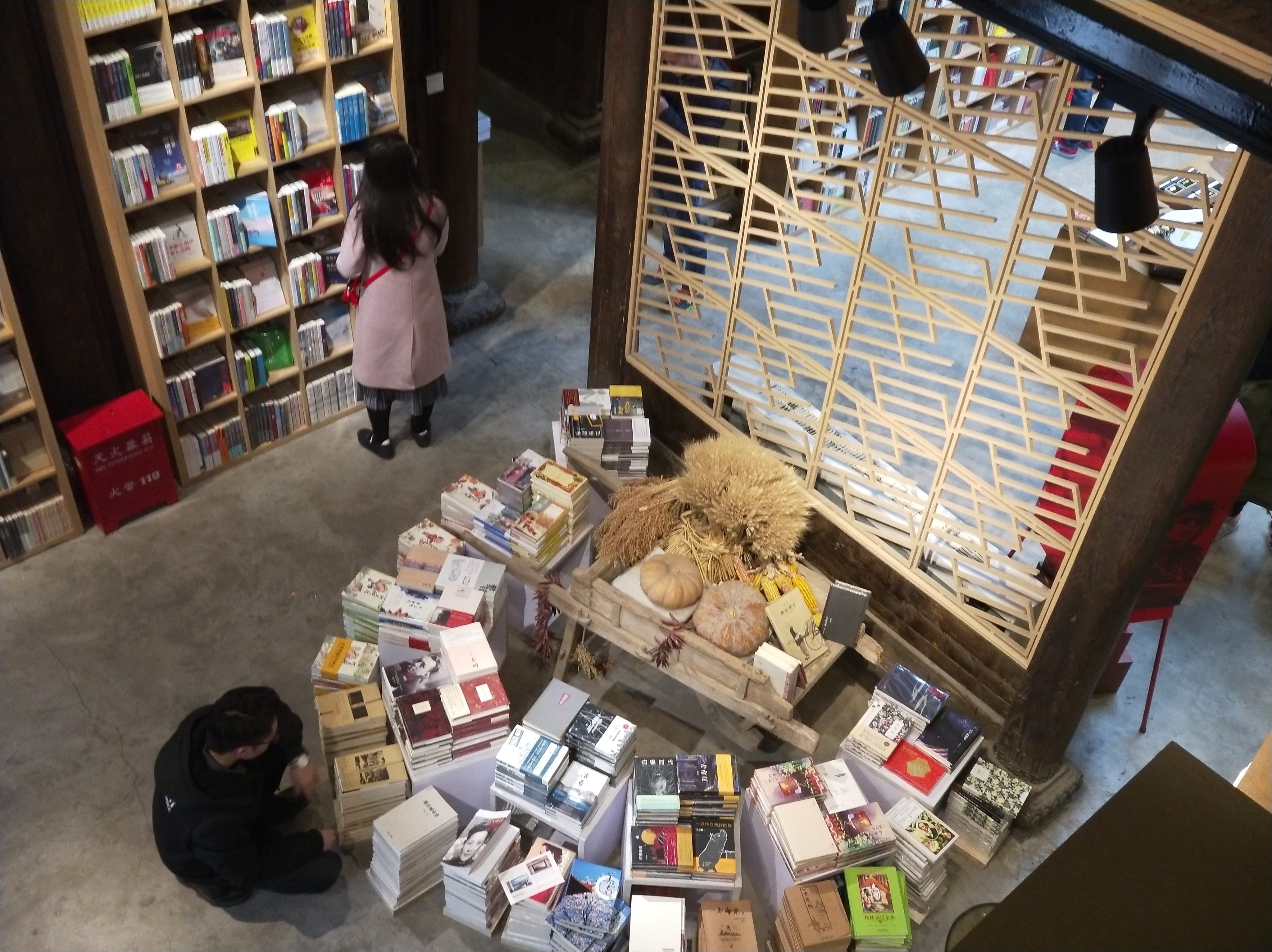 相比许多书店里读者席地而坐,先锋书店设置了专门的阅读区,俨然是图书馆的一角。