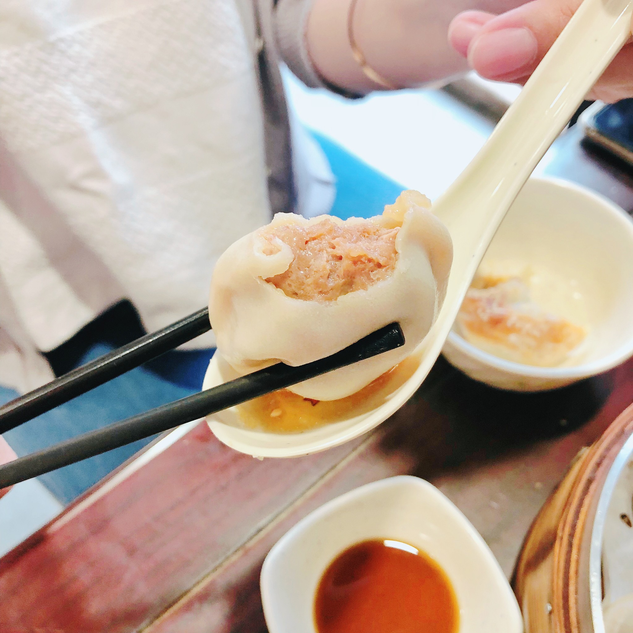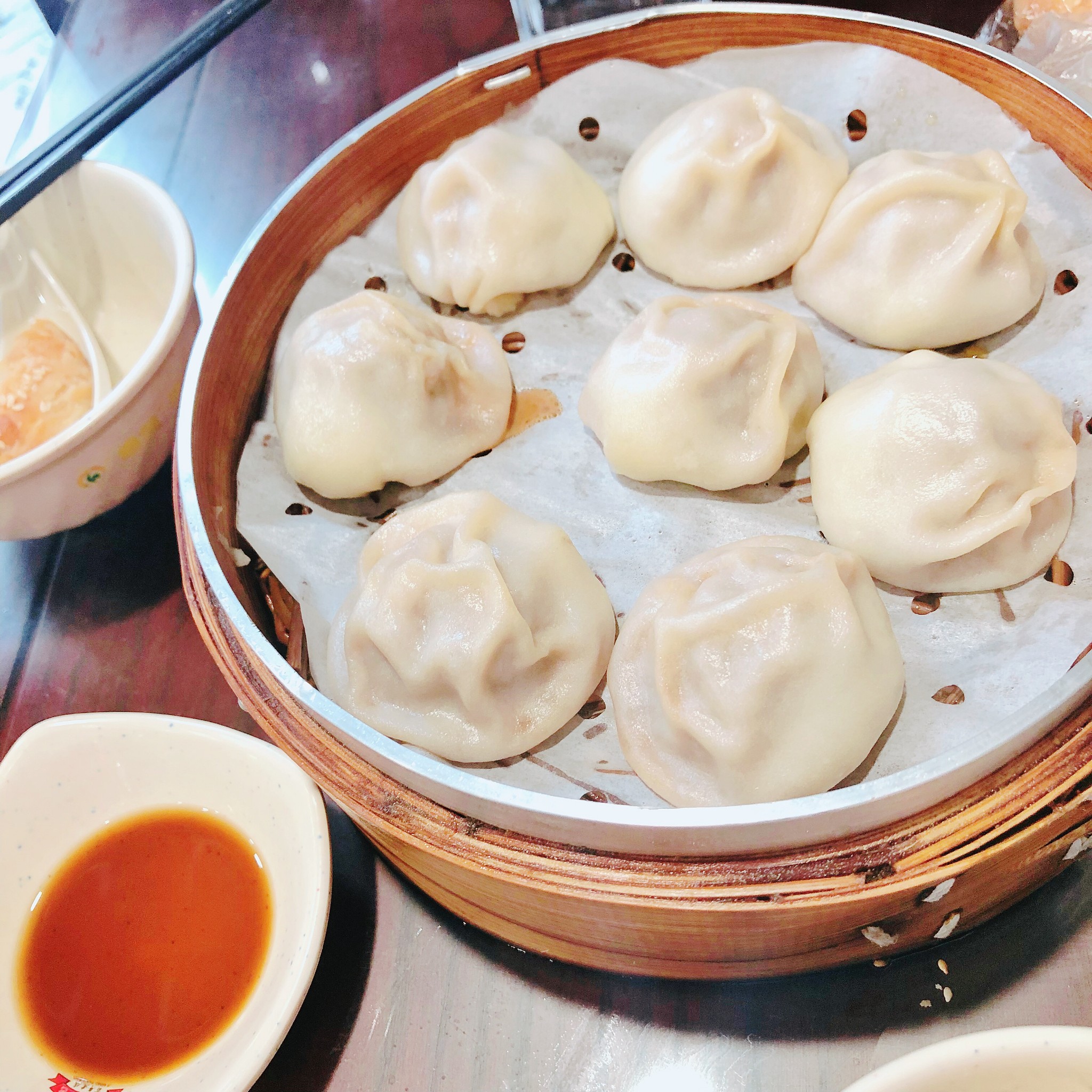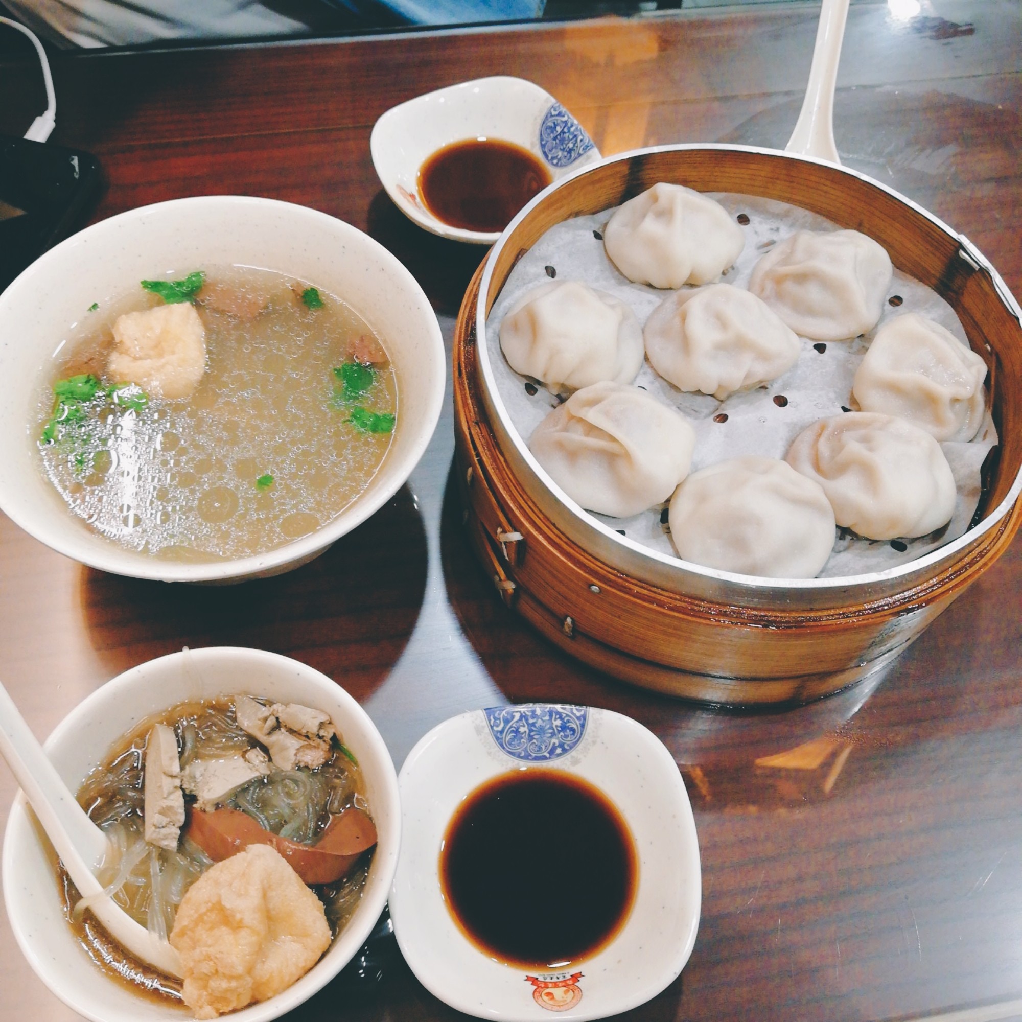 鸡鸣汤包还不错,点了鸡汁汤包,咬一个小口,将汤汁吮吸,滋味相当美妙,蘸着醋,两口一个。