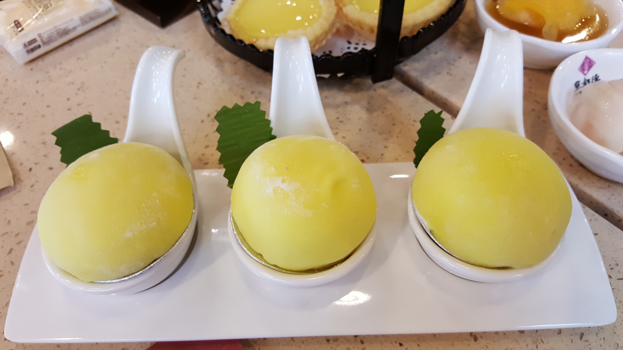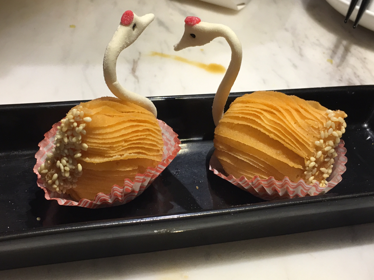 甜点里我最喜欢流沙包和蛋挞,流沙包一掰开,馅就往外流,简直犯规,蛋挞奶味很足,外酥里嫩。