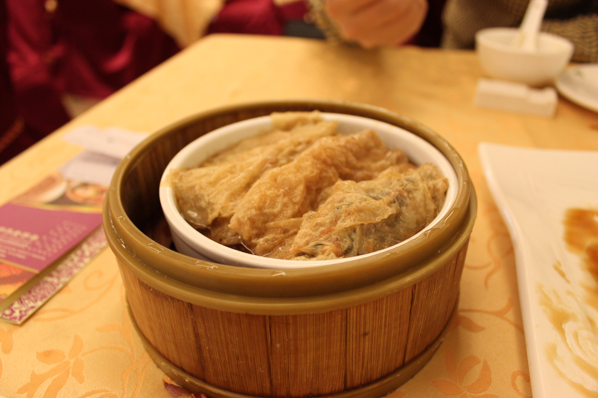 凤爪入味劲道,但是在脱骨和绵软上,个人感觉不及陶陶居。糯米 八宝 鸡,打开荷叶,拨开糯米,你会非常惊喜,里面是满满的虾米、瑶柱、咸蛋黄、板栗、鸡肉,马蹄片。鸡肉入味香浓,其他辅料也各有千秋,非常推荐。莲蓉包偏甜,喜欢甜品的可以尝一下。