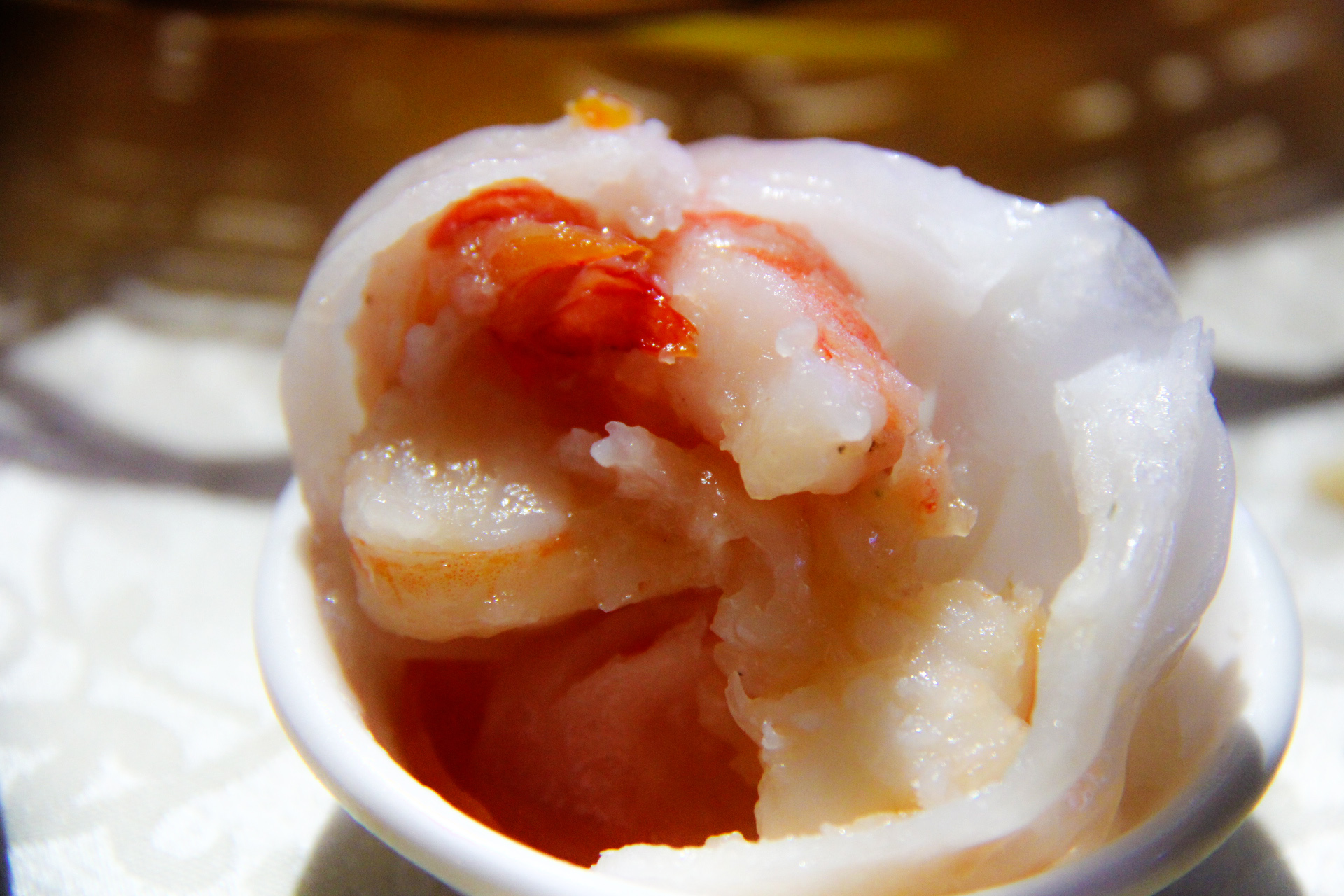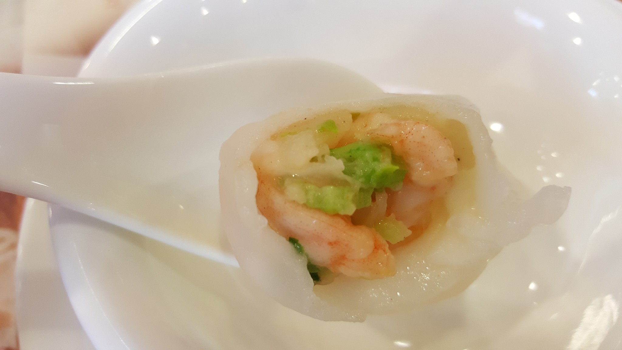 广州酒家的虾饺是必点的,一口咬开,里面是一整只大虾,超满足。