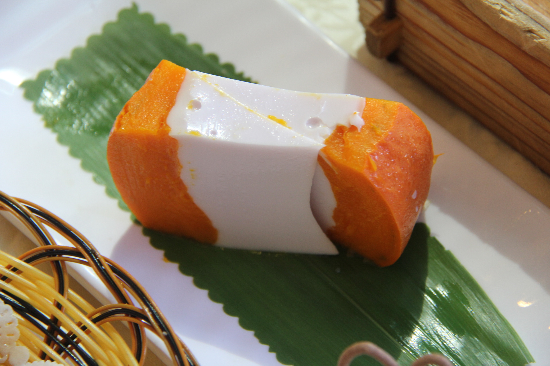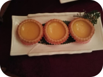吃起来发现口感比蛋挞嫩滑一百倍,柔软中有三文鱼的厚重滋味,然而你会感到舌尖蔓延上一片芥末的味道,瞬间缴械投降。