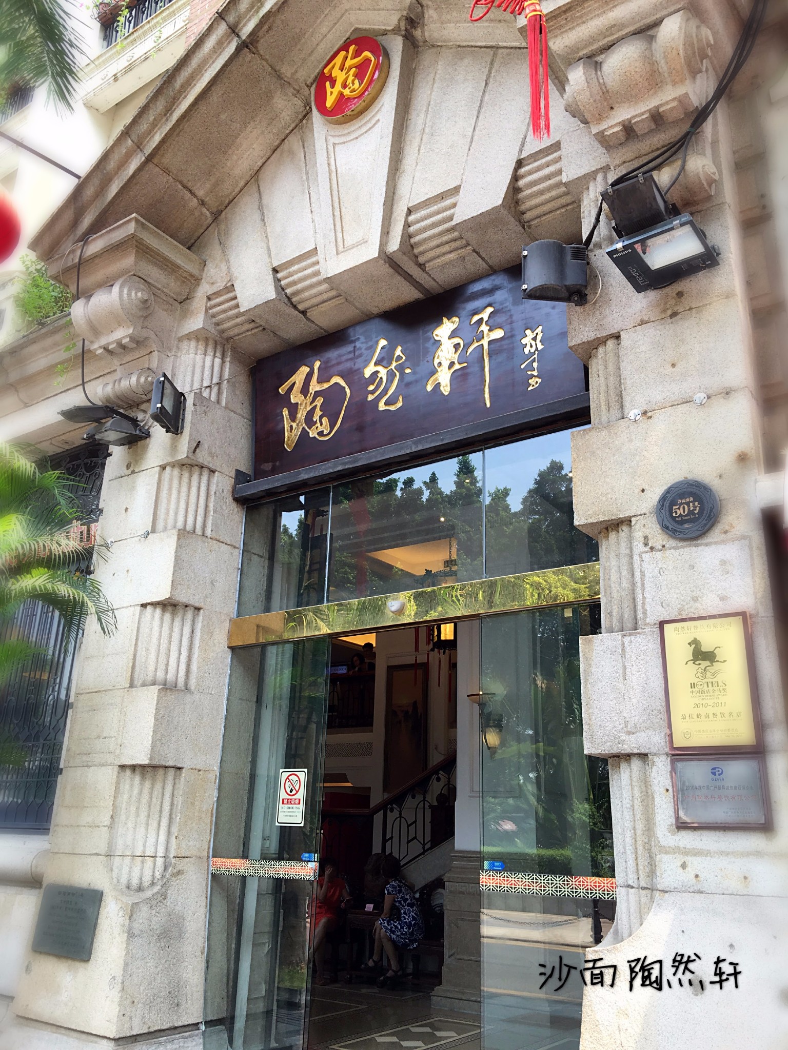 陶然轩,是一家环境优美的茶室。开在沙面一幢临江的六层小洋楼里,外观和内部装修都非常的有格调,坐在大包房里还可以看到珠江的景色,据说老板是位古董收藏爱好者,拿出了藏品中的20%作为餐厅的装饰供客人鉴赏,其中有满洲窗、屏风、酸枝家具和字画,使得整个茶馆古色古香,很有氛围。