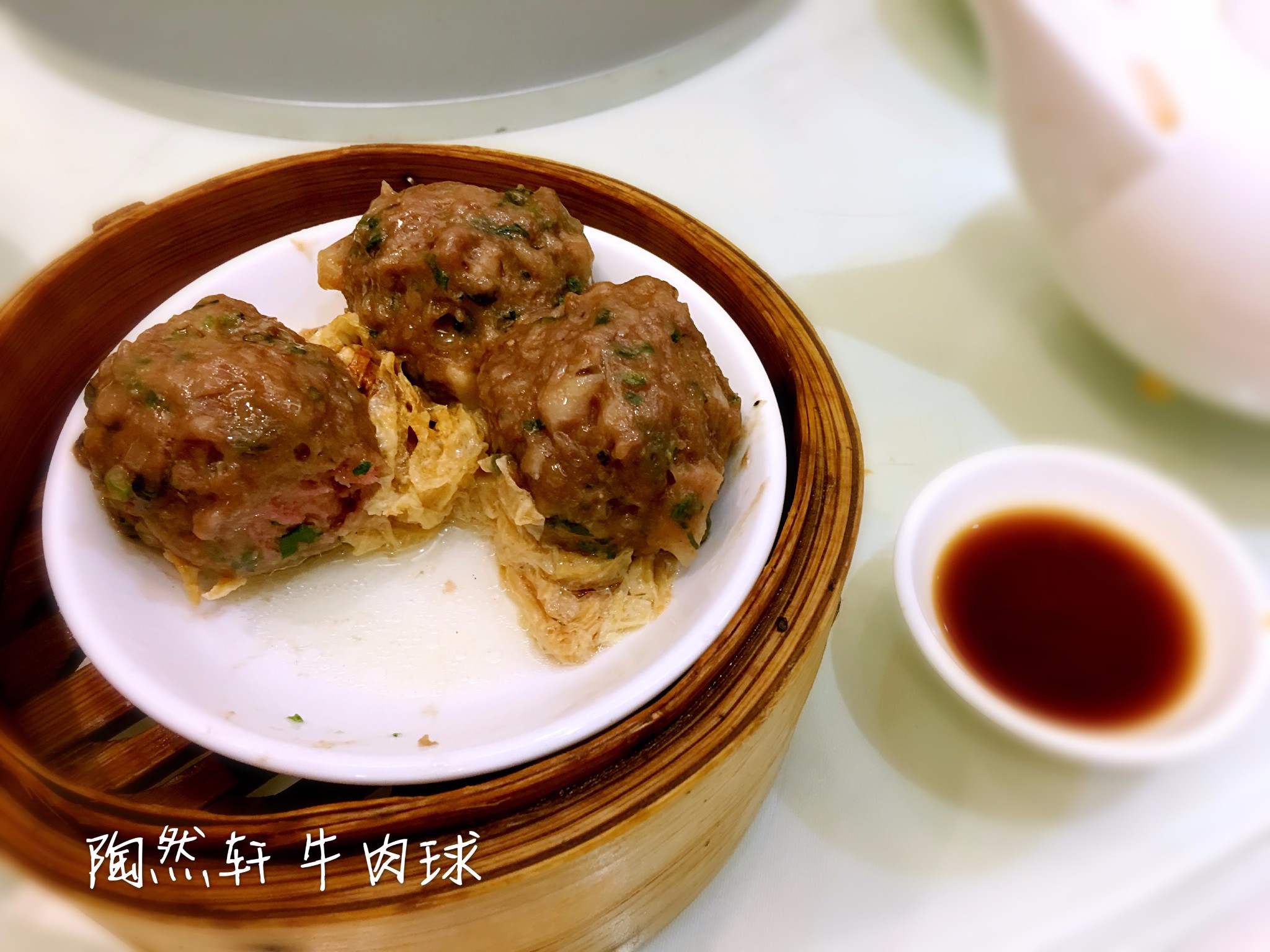 牛肉球,滑,爽,吃的时候一定要蘸上 喼汁