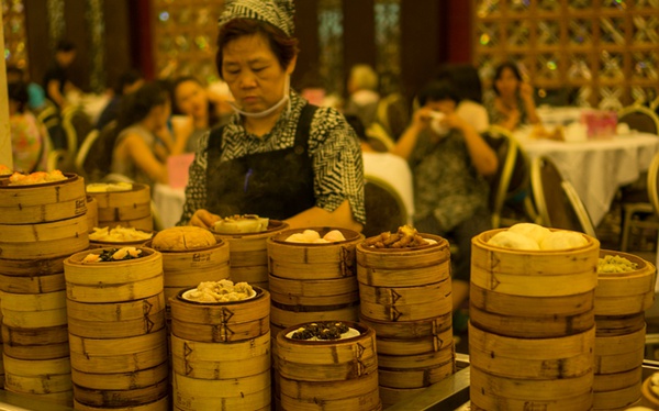 广州人说“一盅两件,人生一乐”, “一盅”是指盅,又称“盖碗”,意思是用盖碗泡茶;“两件”是指点心。广州茶市从早晨6点到第二天凌晨不断档,种类多到你选不过来。