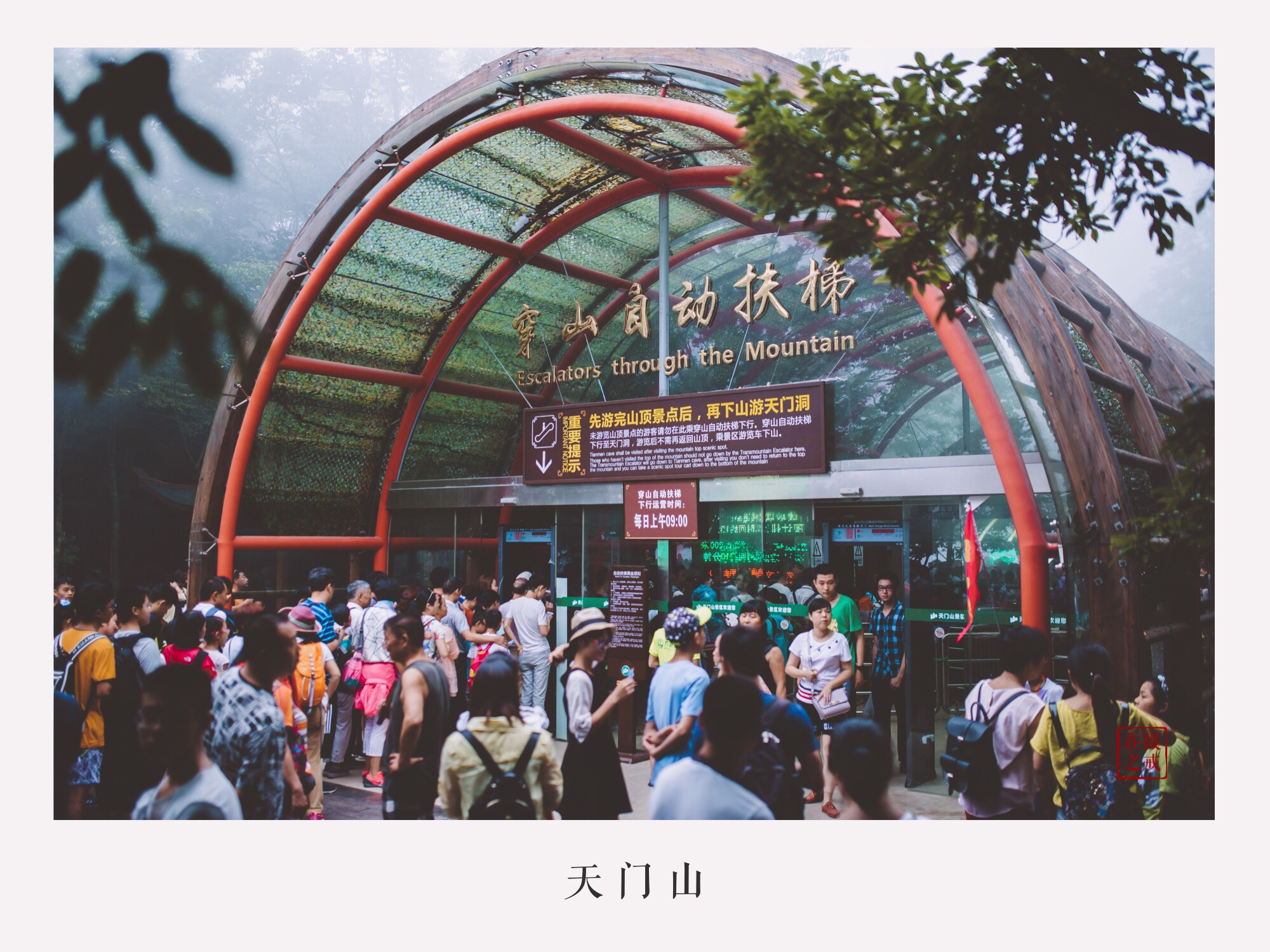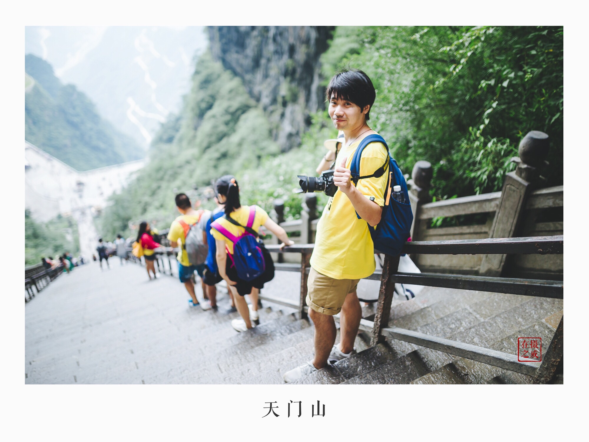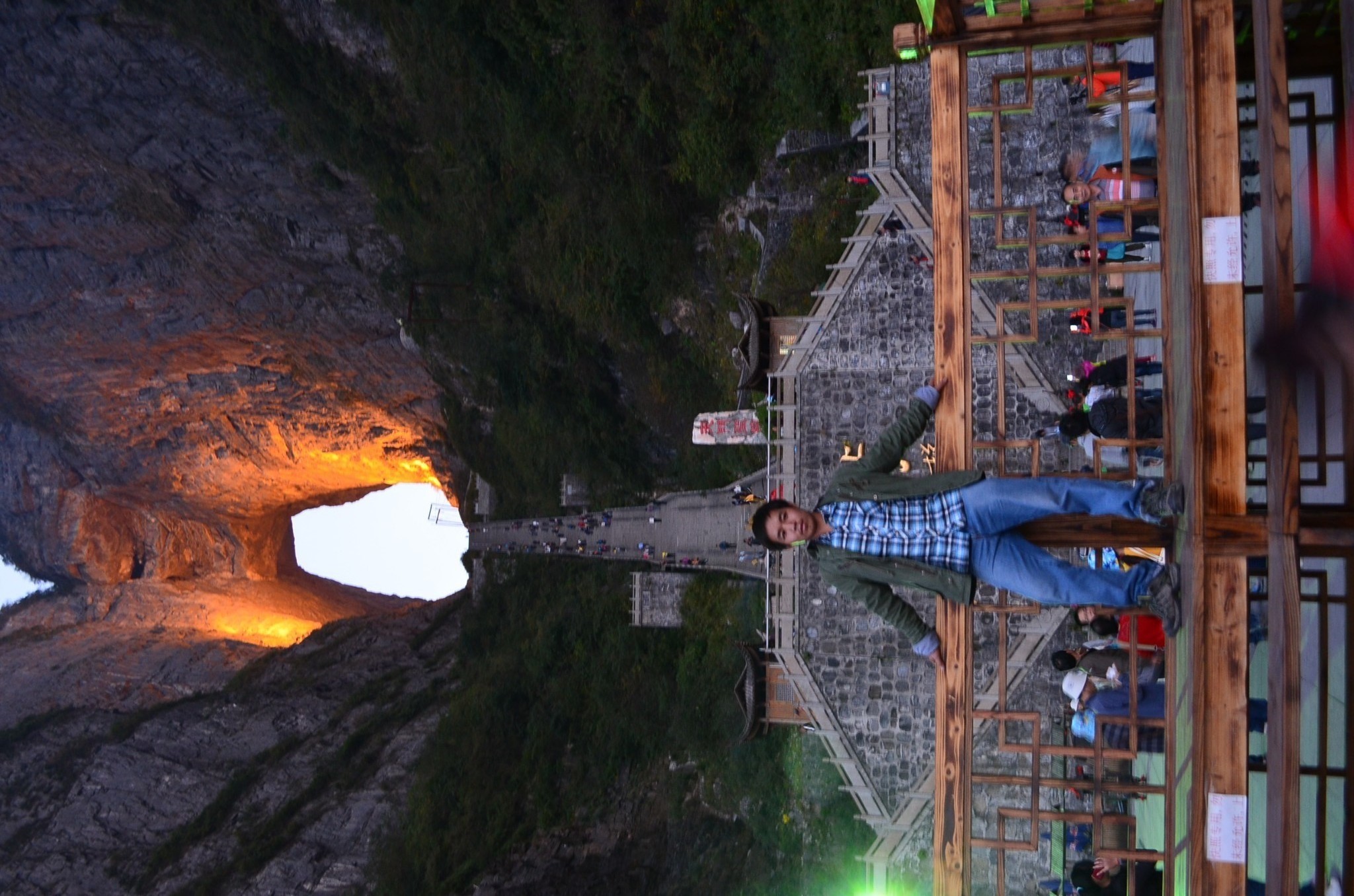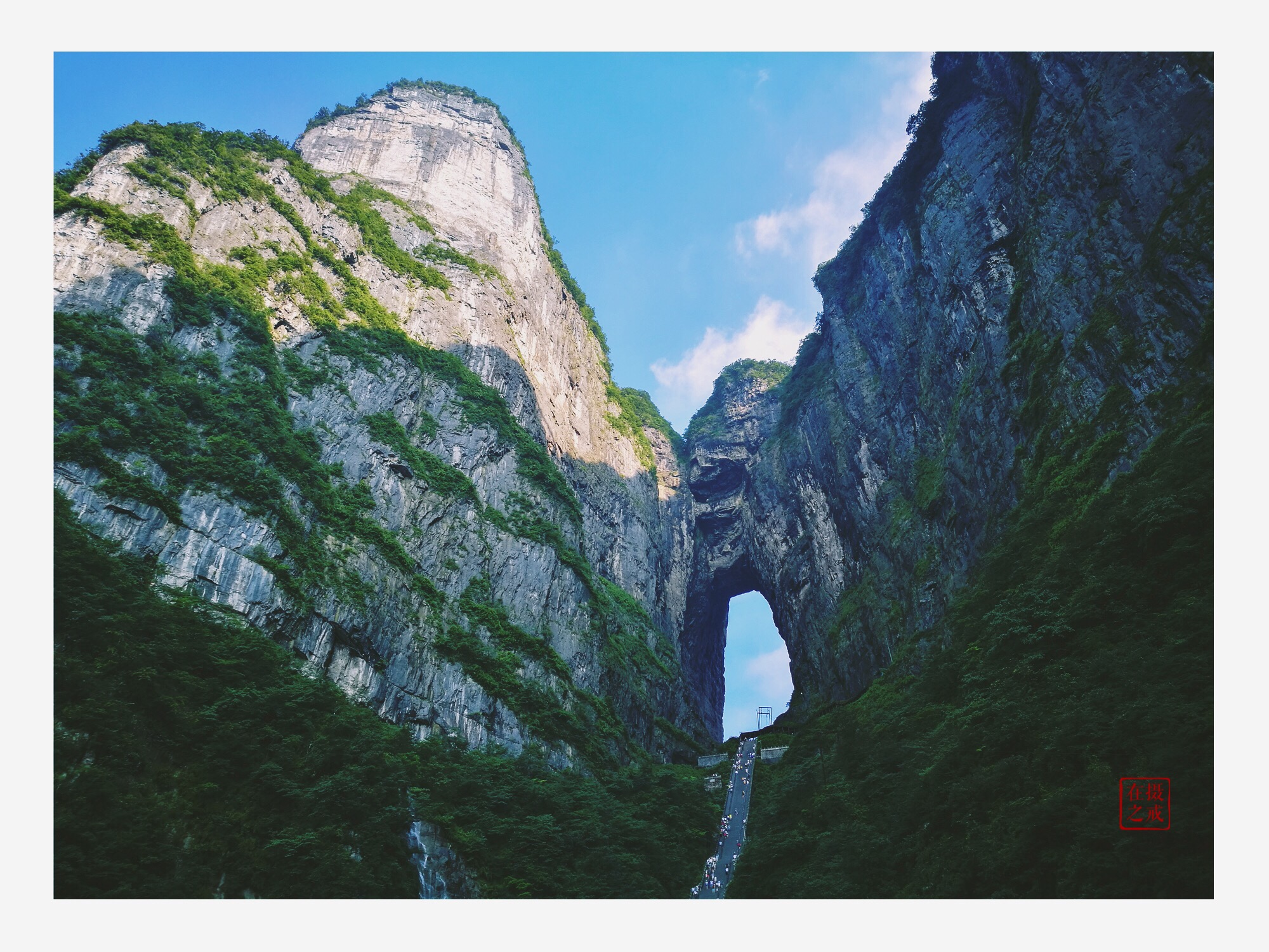天门洞+999阶天梯下了电梯就到了天门洞的底下,紧挨着就是999级的天梯。矮油,看着还是有点陡呀。