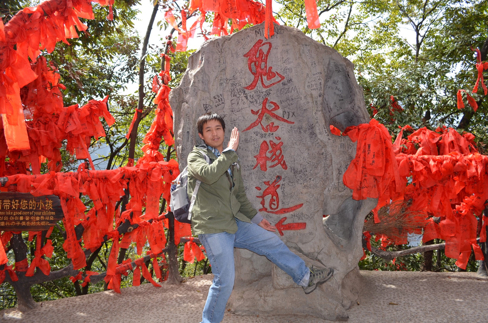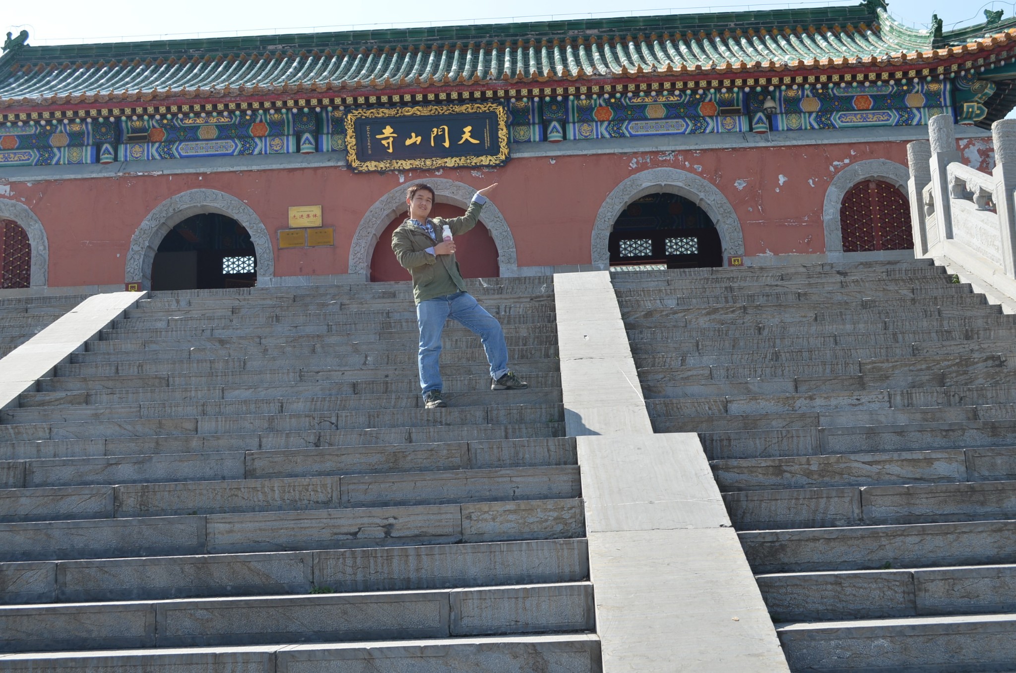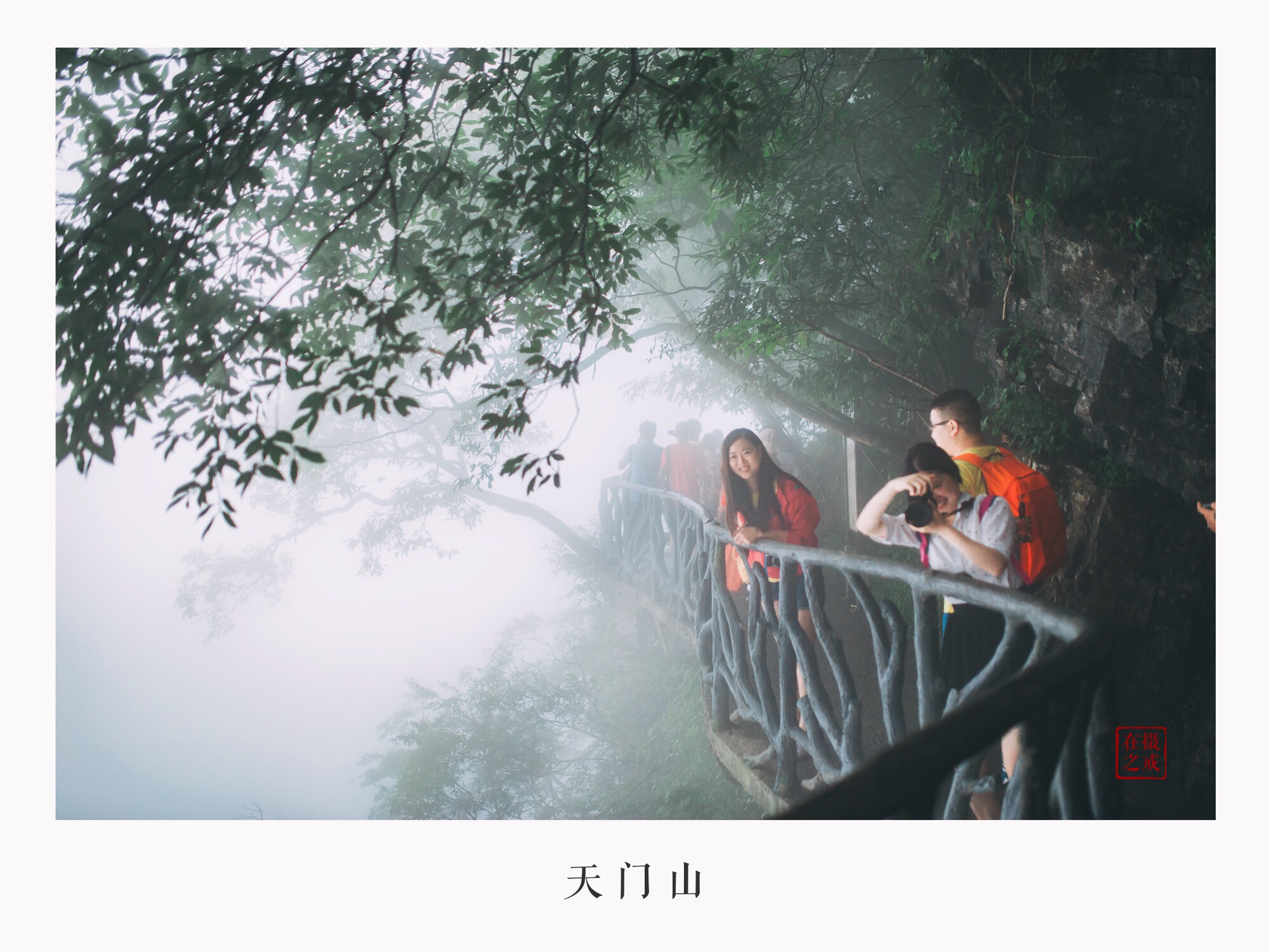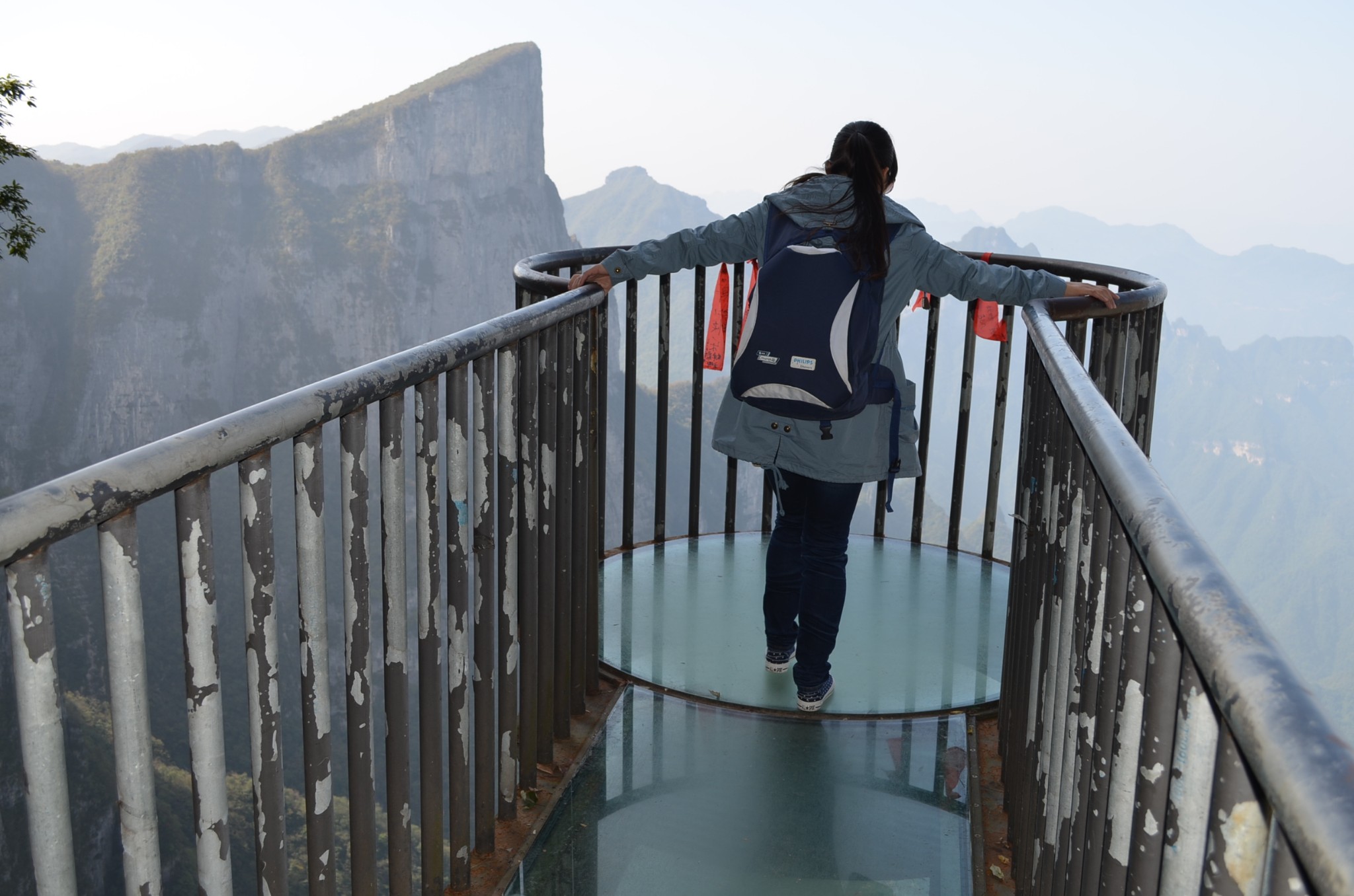 天门洞+999阶天梯下了电梯就到了天门洞的底下,紧挨着就是999级的天梯。矮油,看着还是有点陡呀。