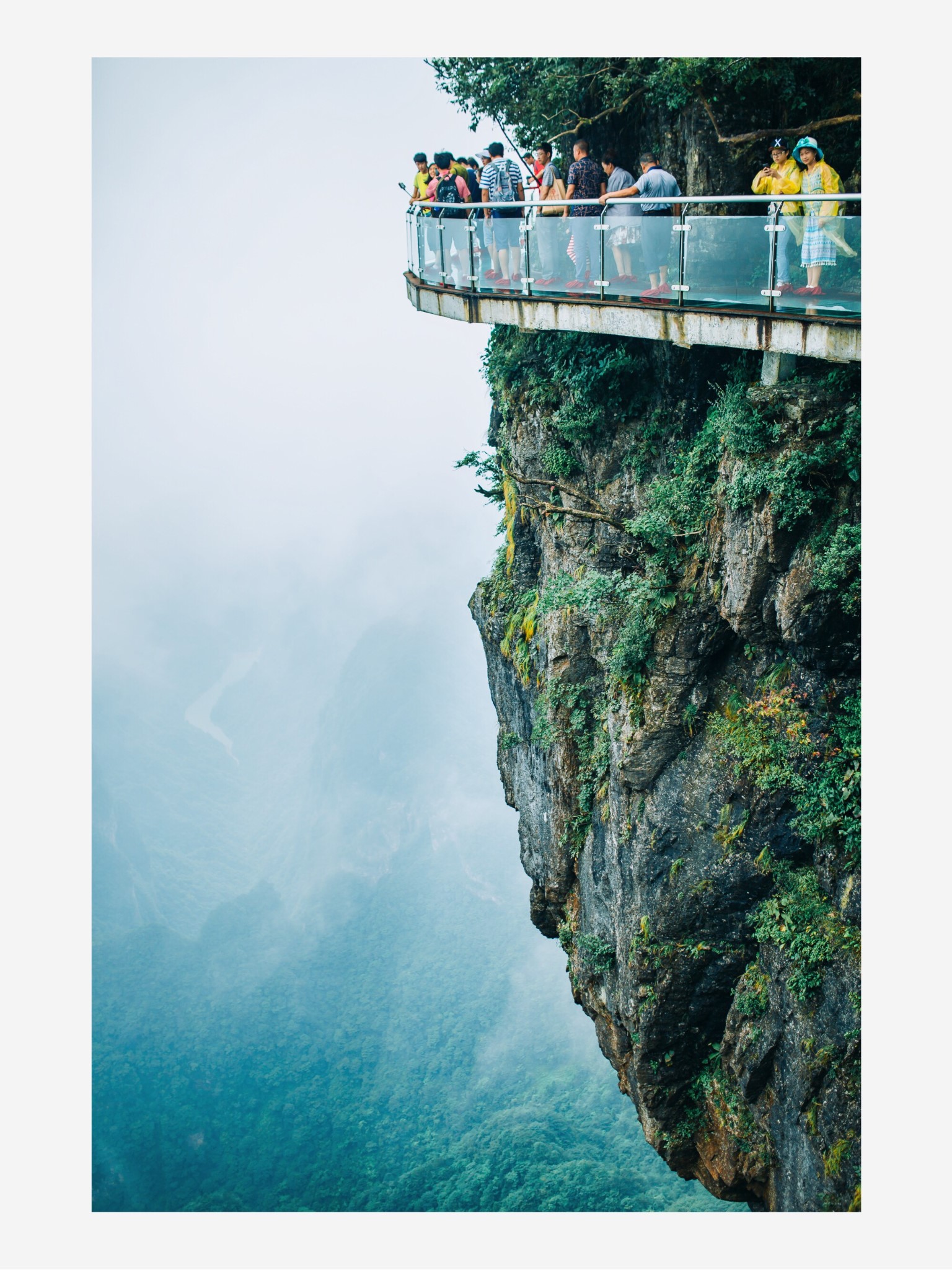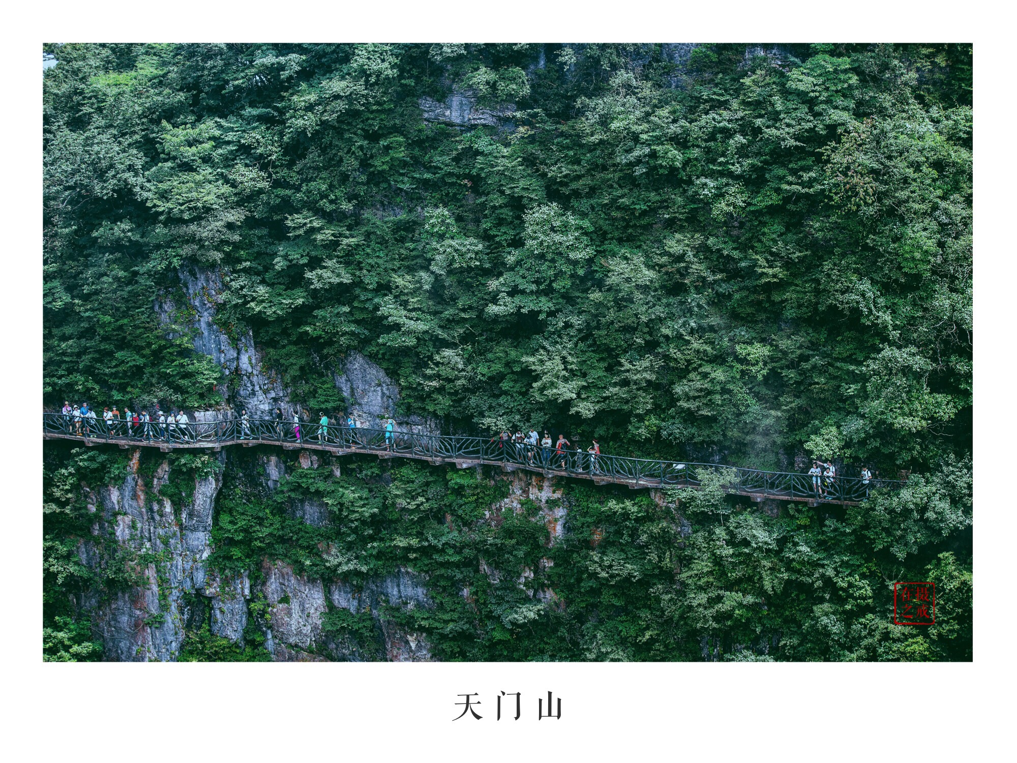 天门山玻璃栈道·天门山玻璃栈道悬于天门山顶西线,是一处悬于峭壁之上的玻璃眺望台。 ·栈道全部用透明玻璃建成,可以看到脚下的万丈深谷,胆战心惊之余,可以感受凌空行走的快乐。 ·天门山玻璃栈道给人带来的刺激震撼感,可以与美国大峡谷玻璃走廊“天空之路”媲美。