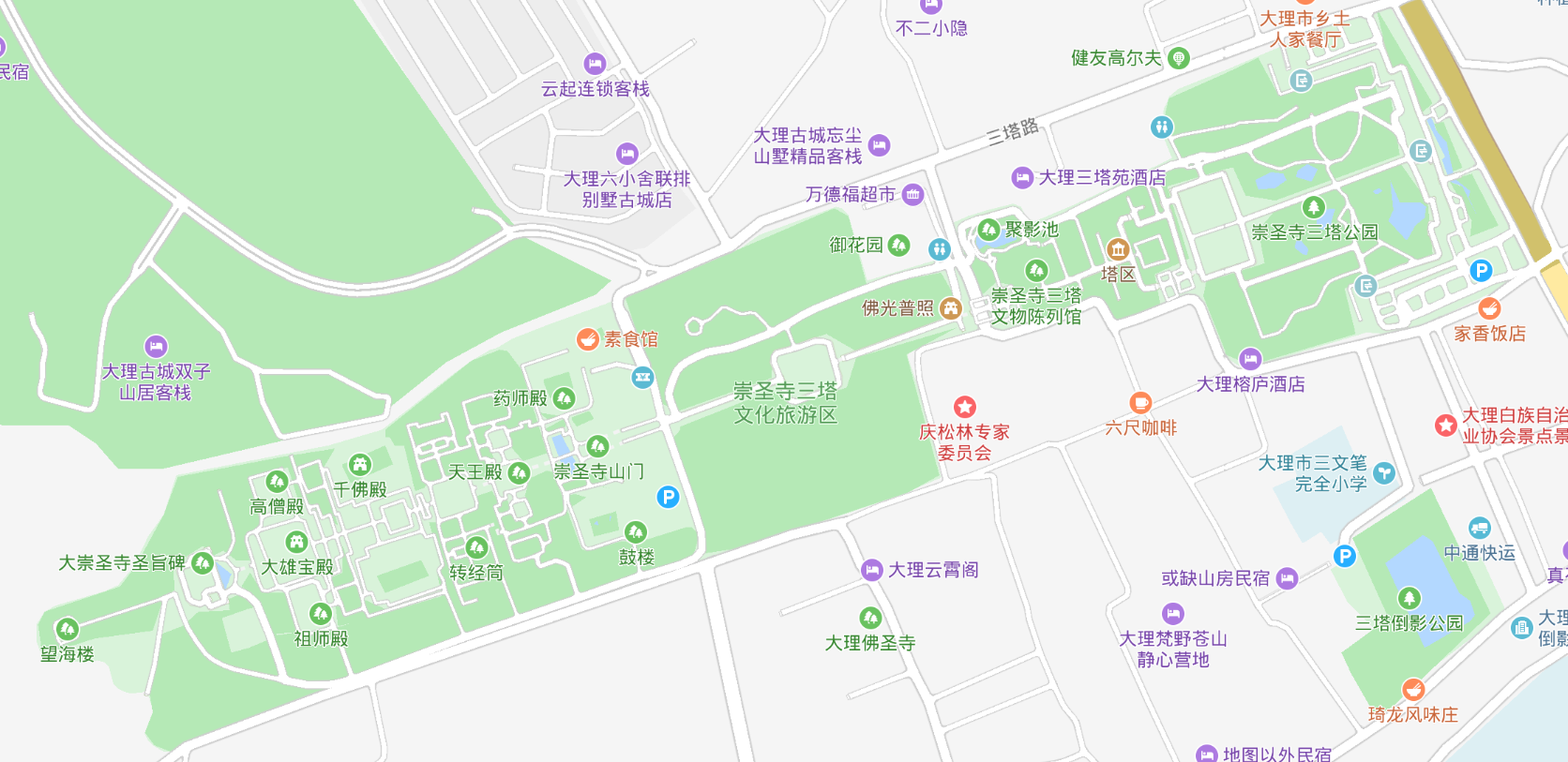 游玩线路建议:从正门检票进入后,沿着中轴线往上(苍山方向)依次游览。