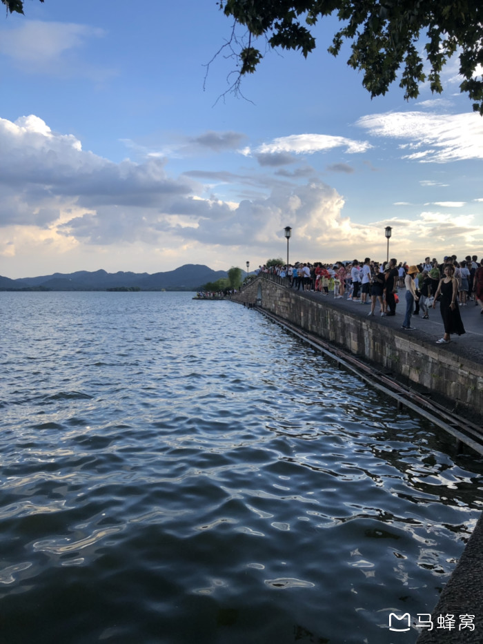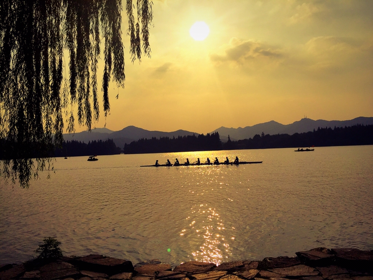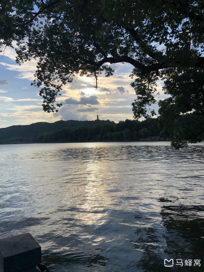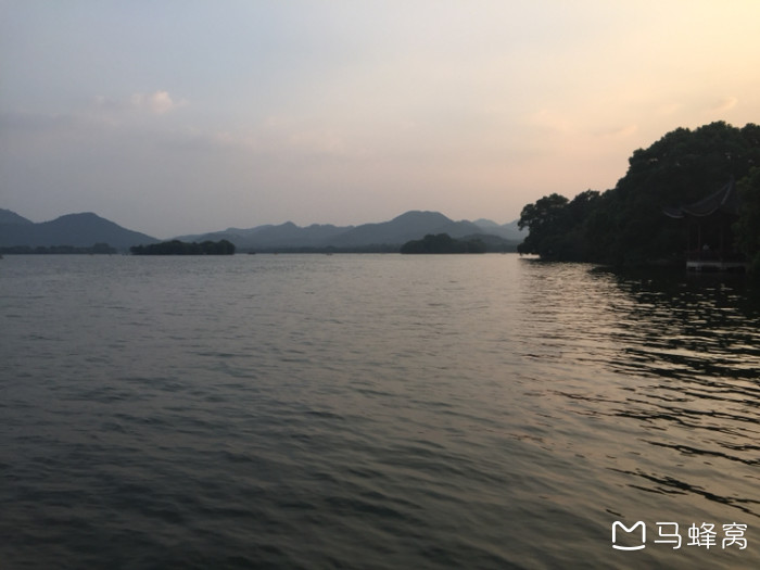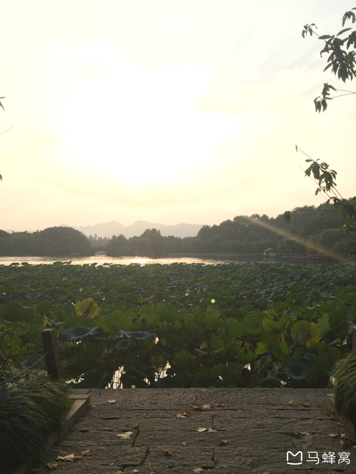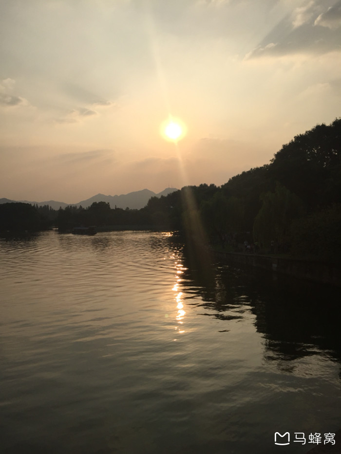 凌晨五点准备去机场出发,在阳光明媚的时候到达了。真的一下飞机就感觉好热啊,不仅热还很潮湿,不适应。到了市区后,把一切事宜安排妥当后就已经到下午了5点了。虽然白天更美丽但夜景也是景色,马上西湖走起,夕阳西下的西湖确实也是一番美丽的景色。
