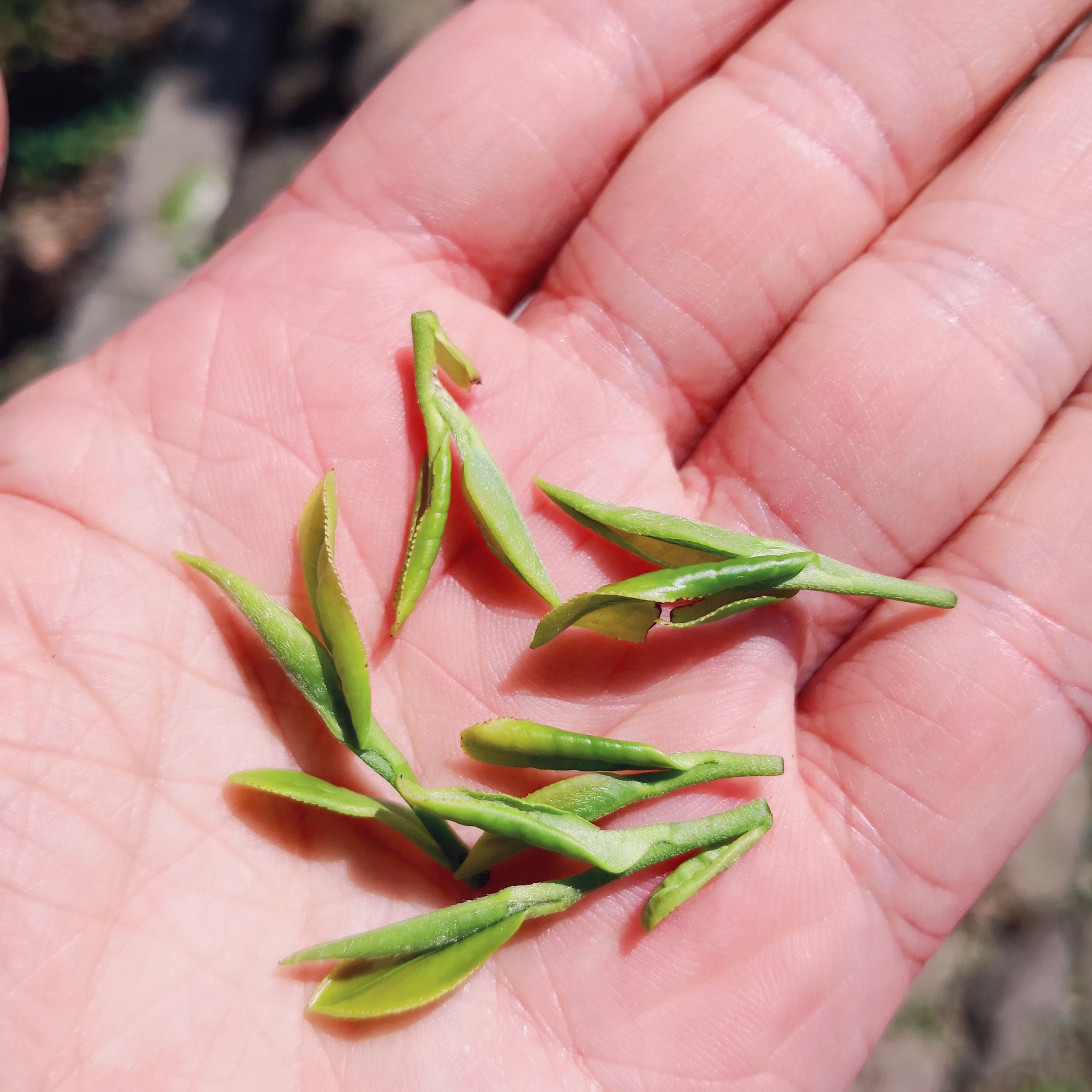 8、茶园爬上十里琅珰山顶, 龙井茶, 龙井村,西湖三位一体,呈现在你眼前,付出的汗水,一切都感到值得。新鲜的龙井茶,在我手上,捂了一下,就变色了,哈哈。我是得到茶农的同意,在山上采摘的。