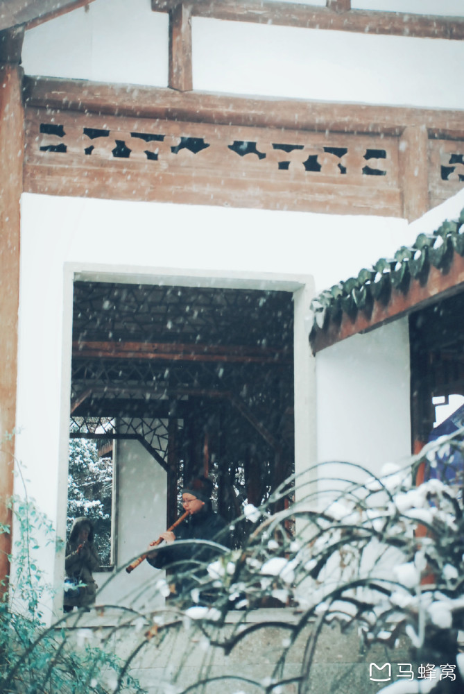 一下雪便是轰动全城的盛世,人甚至会请假去赏雪,去植物园的梅园,吹一曲梅花三弄,弹一首《白雪》红泥小炉煮一壶茶。以上都不是我编的,是真的。一个普通老百姓,都会懂得去珍惜和欣赏,人们的交谈声在看到这位吹着梅花三弄的小哥时,不约而同地戛然而止,放轻脚步,有的路过,有的驻足聆听,但都不会出声交谈破坏意境,我的身边站着各种大爷大妈,可我的耳朵却只能听到笛声和树枝上的雪落进池里的扑簌声。我快要被这日常生活中的非日常,美哭。