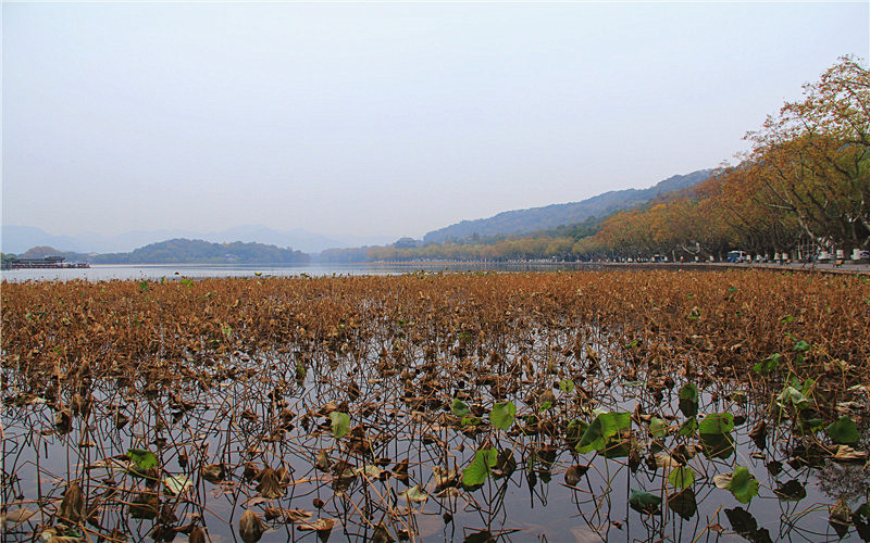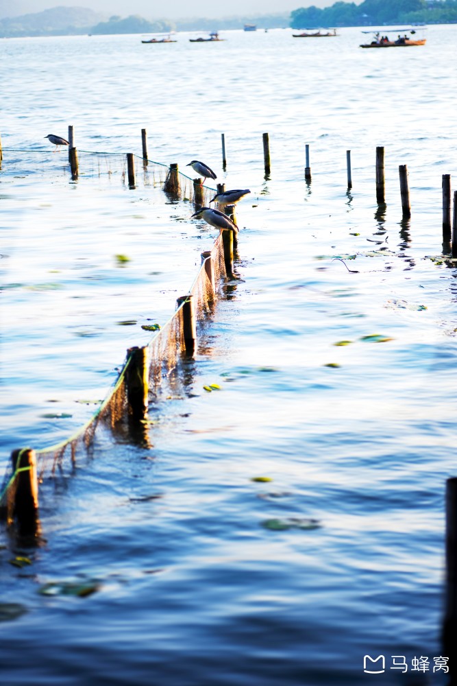 5、茅家埠景区内游客更少,基本可以说没有,这里便成为了候鸟的栖息地,当地摄影师拍摄婚纱的根据地。幽静的小路,绿荫翠柳;清澈的湖水,碧波涟漪;芦苇之中,野鸭戏水,候鸟低飞;湖面上荡漾着小舟,此刻,我什么都不做,只想在此静静地待一会儿,看着日落下的西湖美景。